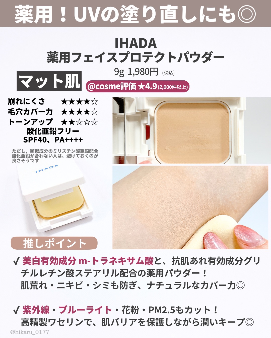 テカリが気になった時にポンポンするだけでお直し完了!保湿もしてくれるフェイスパウダー UVも十分だし毛穴補正もしてくれるし素晴らしすぎる商品 酸化亜鉛が入ってないのがわたしの中で大事で、毛穴の詰まりの原因になる為