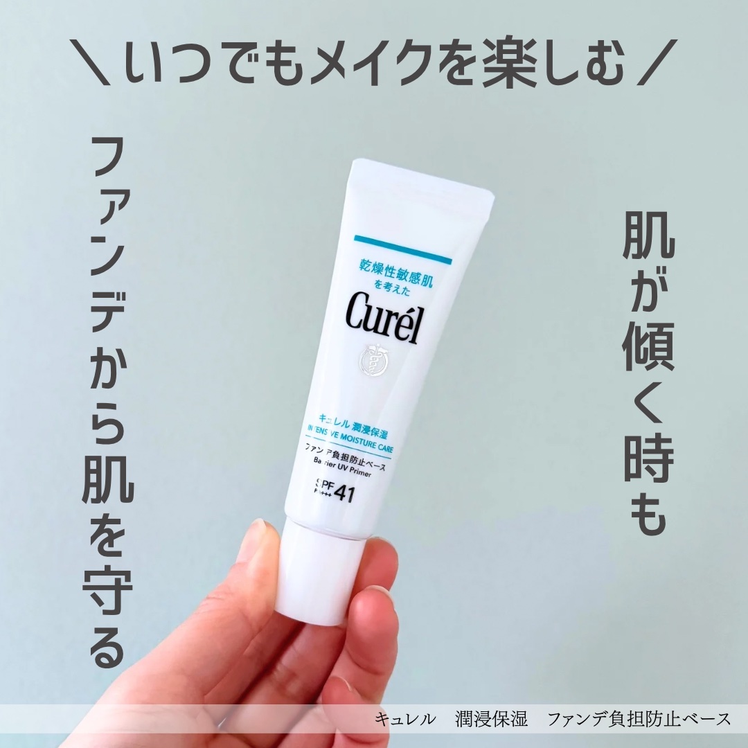 キュレル潤浸保湿ファンデ負担防止ベースその名の通り、ファンデーションによる肌負担を抑えてくれる下地!SPF41、PA+++の紫外線防止効果付き。取り出すとほんのりピンクの自然な血色感もある色味で、私の肌色では広げるとトーンアップはしましたが、...