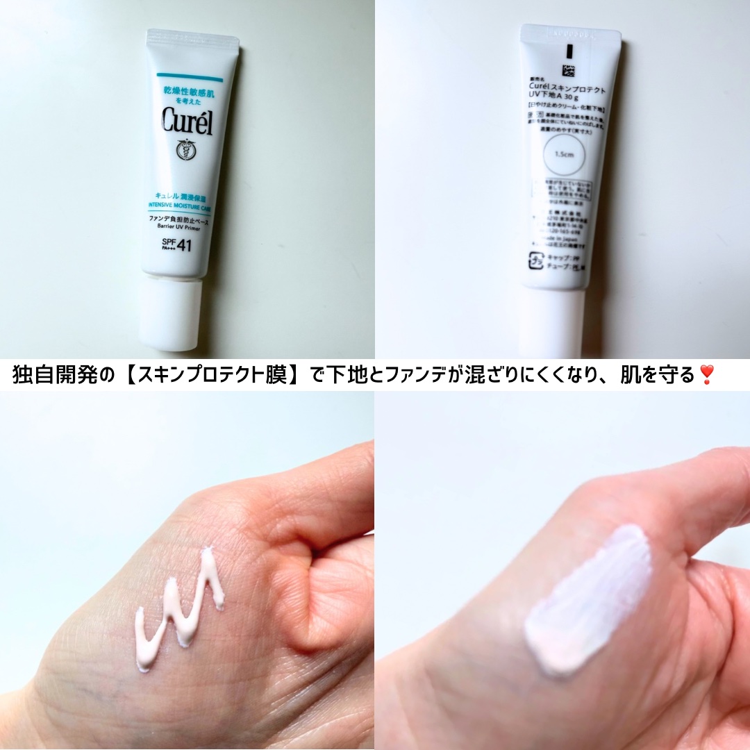 - 【敏感肌用】 独自開発の「スキンプロテクト膜」がファンデーション*2 のごわつき負担を防ぎ、乾燥性敏感肌の方がためらいがちな「しっかりメイク」まで楽しめる化粧下地UVです。トーンアップ、毛穴・肌の凹凸をぼかし、赤みもカバー。ファンデーションののりをよくし、美しく仕上げ、化粧くずれも防ぎます。 ●潤い成分(セラミド機能成分*3、ユーカリエキス、アスナロエキス)配合、日中も潤った肌が続く ●微細パール配合で肌の艶感アップ ●のびがよく、みずみずしい使い心地 ●SPF41・PA+++ *2 自社製品 *3 セチルPGヒドロキシエチルパルミタミド <乾燥性敏感肌を考えた低刺激設計> ●ノンケミカルUV(紫外線吸収剤無配合) ● 無香料 ●アルコールフリー(エチルアルコール無添加) ●アレルギーテスト済*5 ●乾燥性敏感肌の方の協力によるパッチテスト済*5 ※パッチテスト:皮膚に対する刺激性を確認するテストです ●にきびのもとになりにくい処方 ノンコメドジェニックテスト済*5 *5 すべての方にアレルギーや皮膚刺激が起こらない、コメド(にきびのもと)ができないというわけではありません。 商品に関するお問い合わせ 受付時間9:00~17:00(土曜・日曜・祝日除く) *製品の誤飲・誤食など緊急の場合は、受付時間外でもお電話ください キュレル:0120-165-698