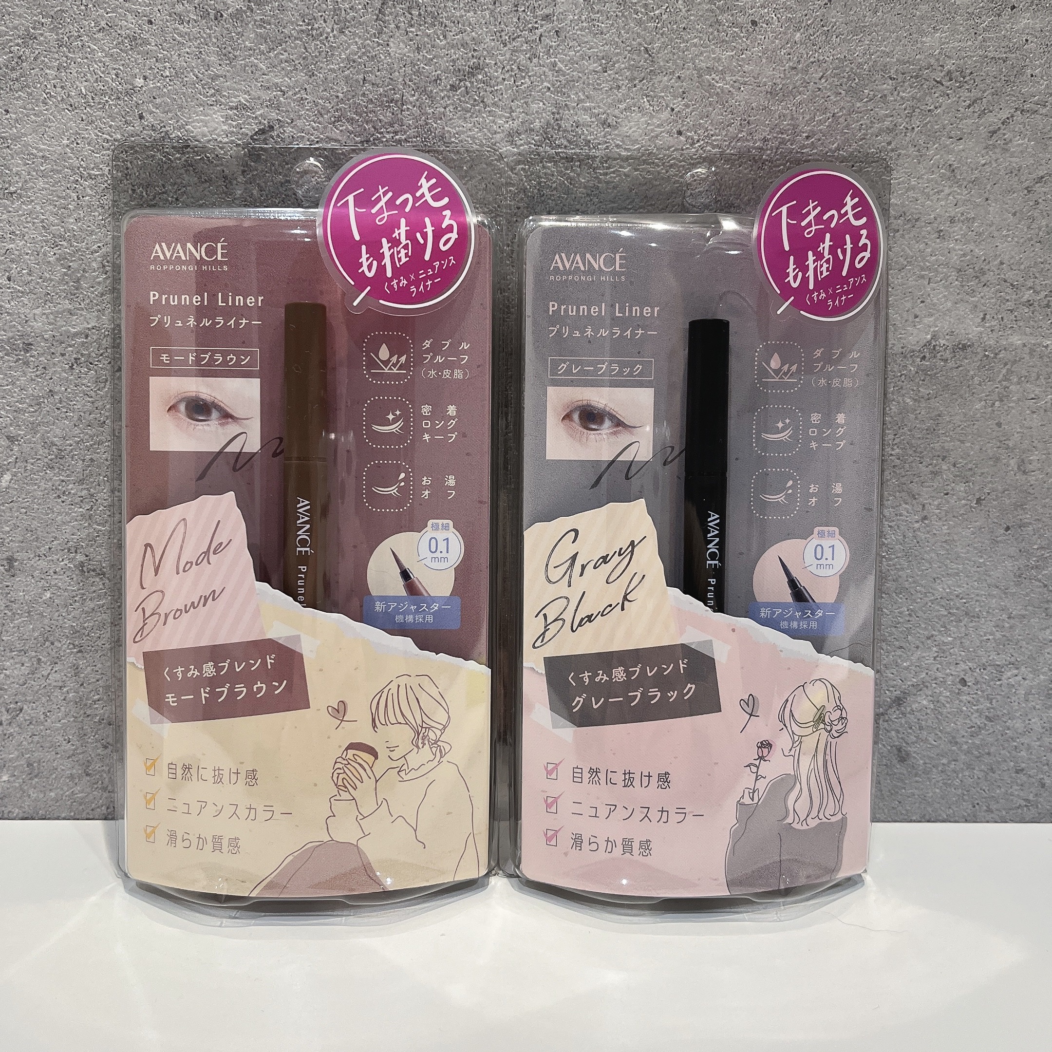 絶妙ニュアンスカラーのアイライナーが2025年4月に発売🎉 グレーブラックとモードブラウンの2色展開! 水・皮脂に強いダブルプルーフ処方なのにお湯で簡単OFF可能🙆♀️ メイクしながらケアも叶えてくれるよ🥺