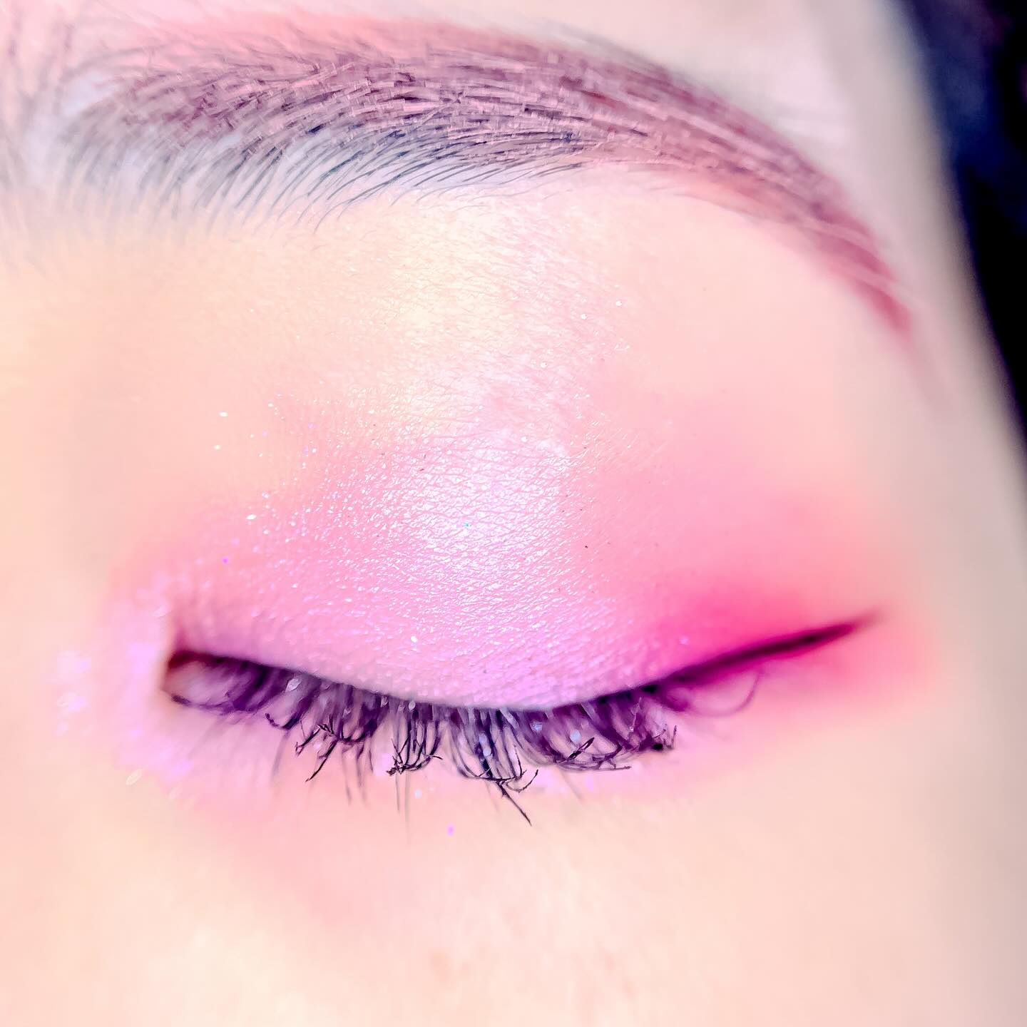 ピンクにグレージュも良いですね👌💗 今日は可愛らしい感じにしてみました💕 上下瞼黒目〜目頭側にラメを塗ってキラキラさせております🤩 目尻はマットのピンクを濃いめに重ねて💗 グレージュのアイライナーと相性◎