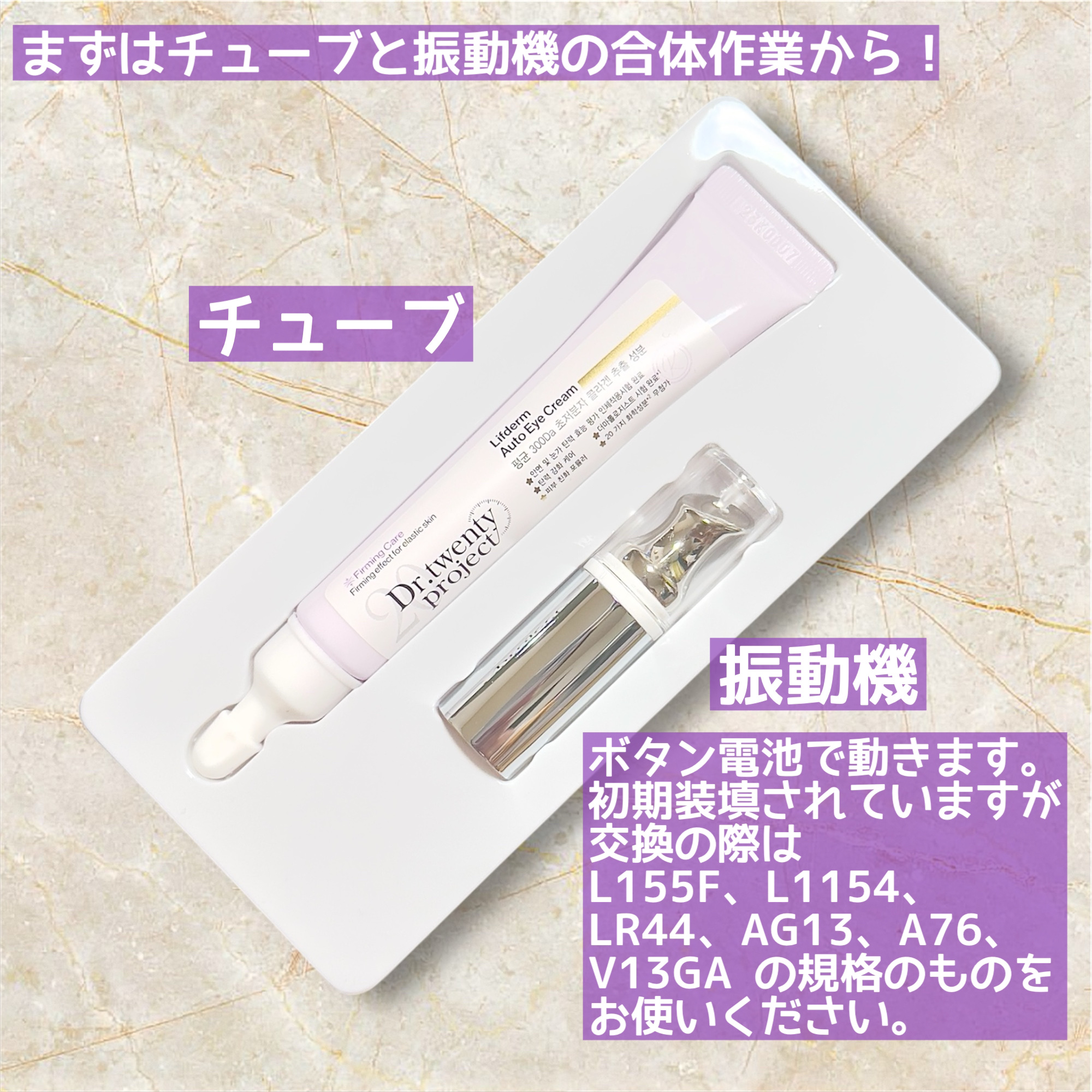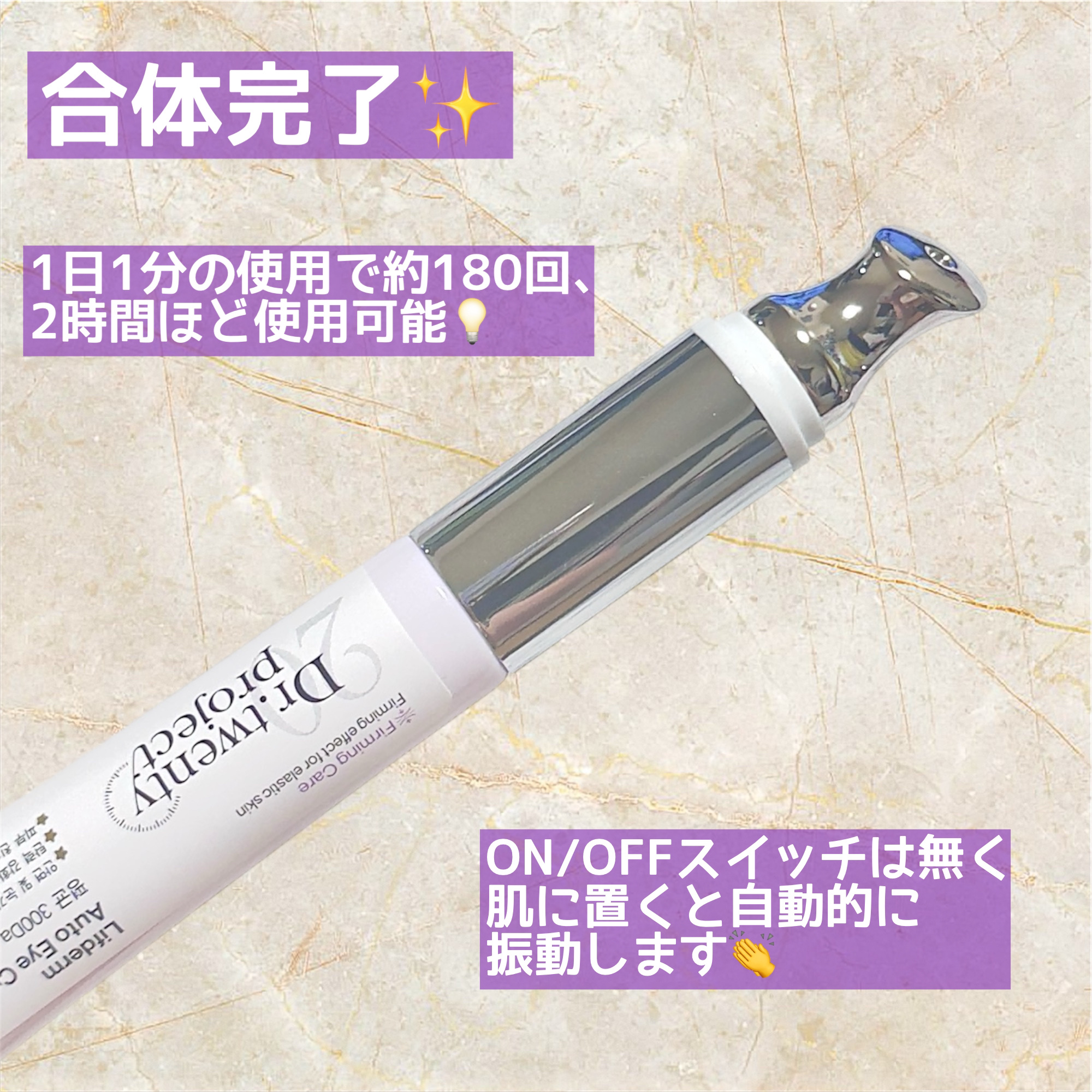 お肌に触れるとぶるぶる〜っと振動するアプリケーター付き👀 今回私が使用したタイプは、低分子コラーゲン入りでハリ対策にぴったりなアイクリーム🙌🏻 1分に12,000回も振動してるみたいで、クリームがしっかりお肌の奥に入り込んでいってるみたい! 振動は優しめだから痛みや刺激を感じることはない😚 アイケアは早いうちから始めた方がいいって聞いたから迷ってる方は今からアイケア始めることをおすすめします👀