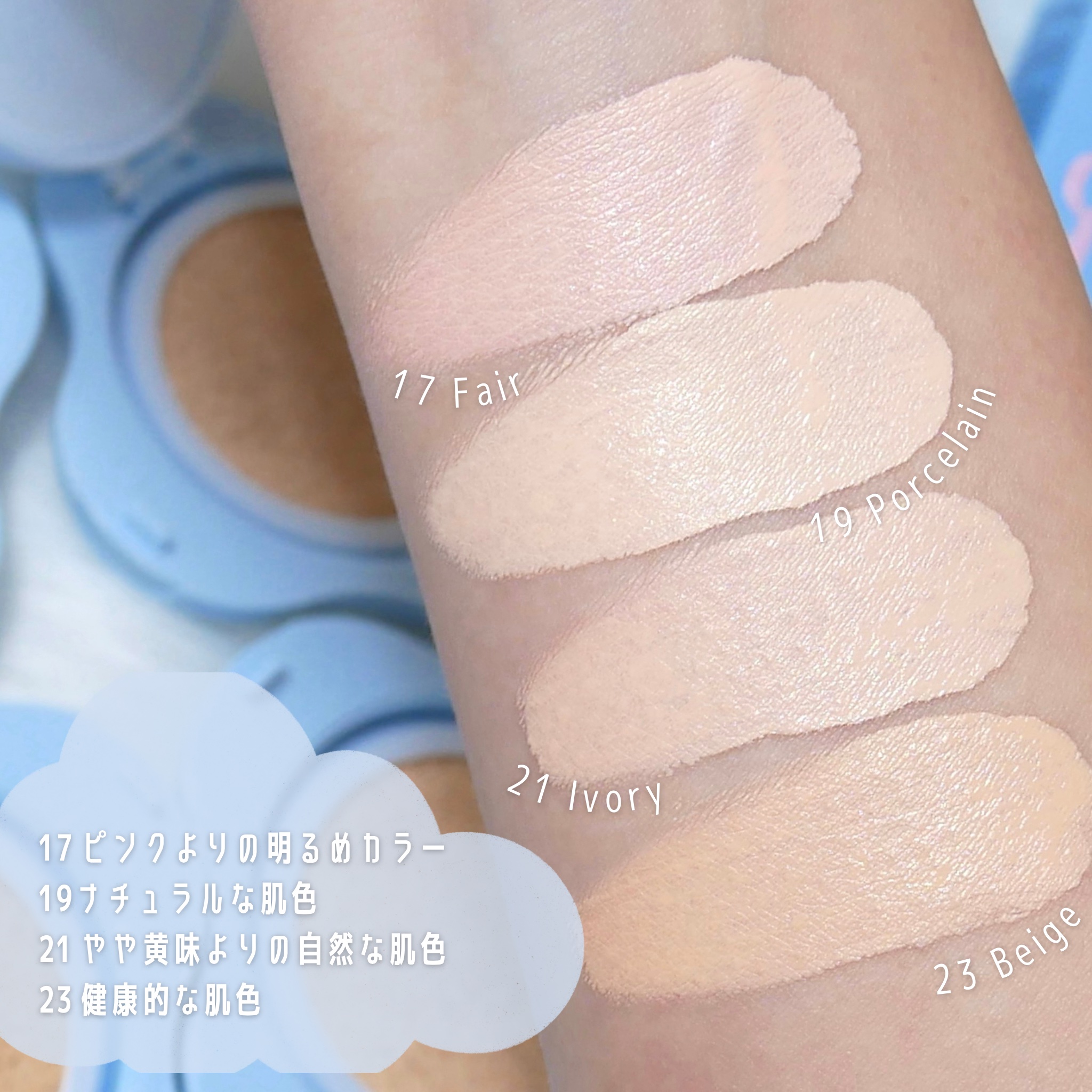 - 【ふんわり晴れごこち 映える#うぶ肌】 カラーコントロール×カバー力×セミツヤ肌を長時間キープ 1つで3役、華やかな透明感*¹のある肌に仕上げるマルチクッション <触れたくなる儚げ透明肌*¹> ブルーパウダー*²が肌のくすみや色ムラを補正。ワントーン明るい*¹透き通った肌印象に。 <ナチュラルなカバー力> 毛穴や赤みなど気になる肌悩みもふんわりカバー <まるで雲のような軽やかな付け心地> 重たさを感じさせない解放感のあるセミツヤ肌に SPF42/PA+++ <キュートなパッケージデザイン> 韓国のヘアメイクサロン「Kitts」と共同開発 アイドル級の透き通った色白肌を表現 *¹ メイクアップ効果による *² 酸化チタン