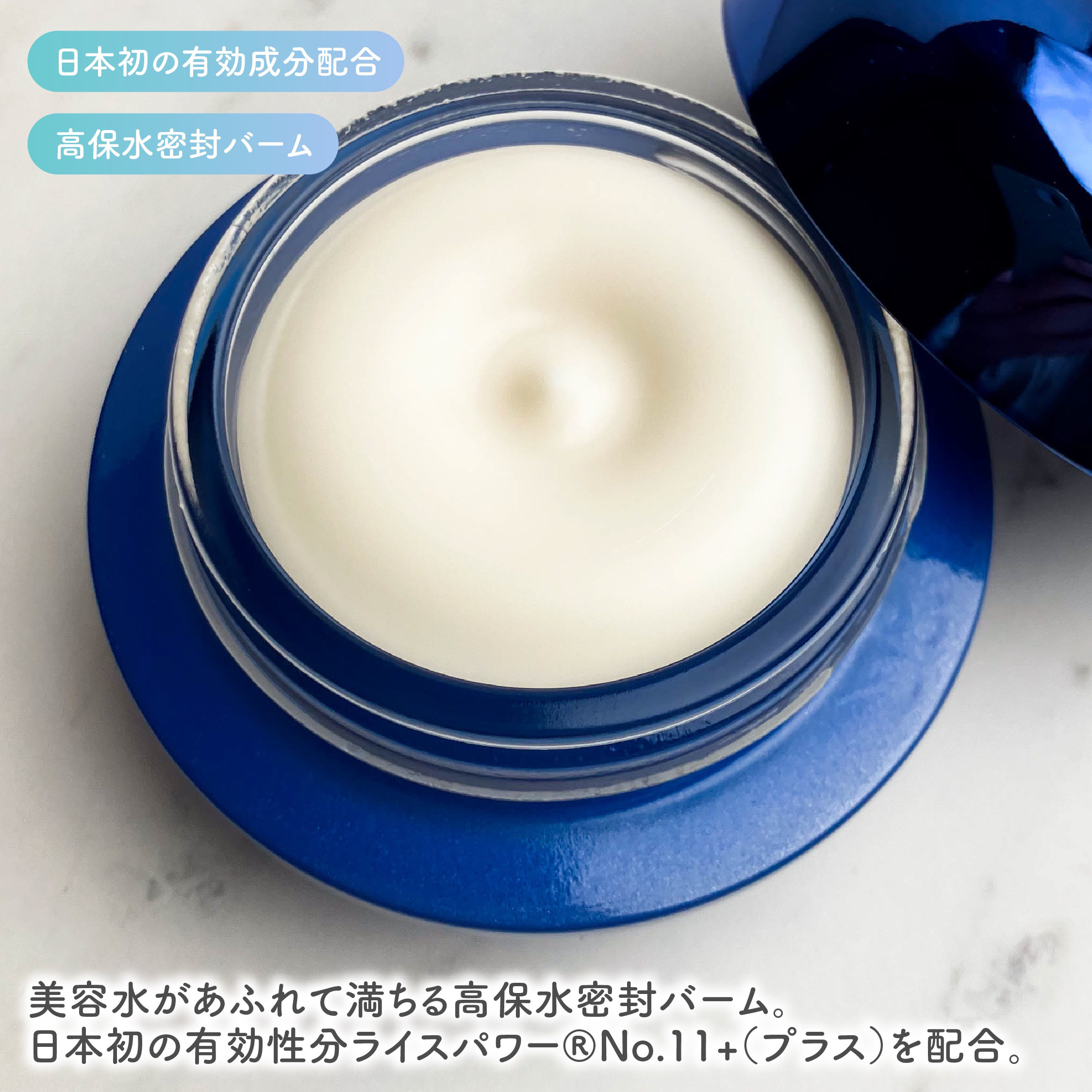 うるおいもシワも改善する、日本初 ※の有効成分「ライスパワー ®No.11+(プラス)」配合。根深い乾燥を高保水膜でケア。 日本初、肌の水分保持能改善とシワ改善をWで叶えるライスパワー ®No.11+(プラス)。 ベタつかない、薬用高保水密封バームです。