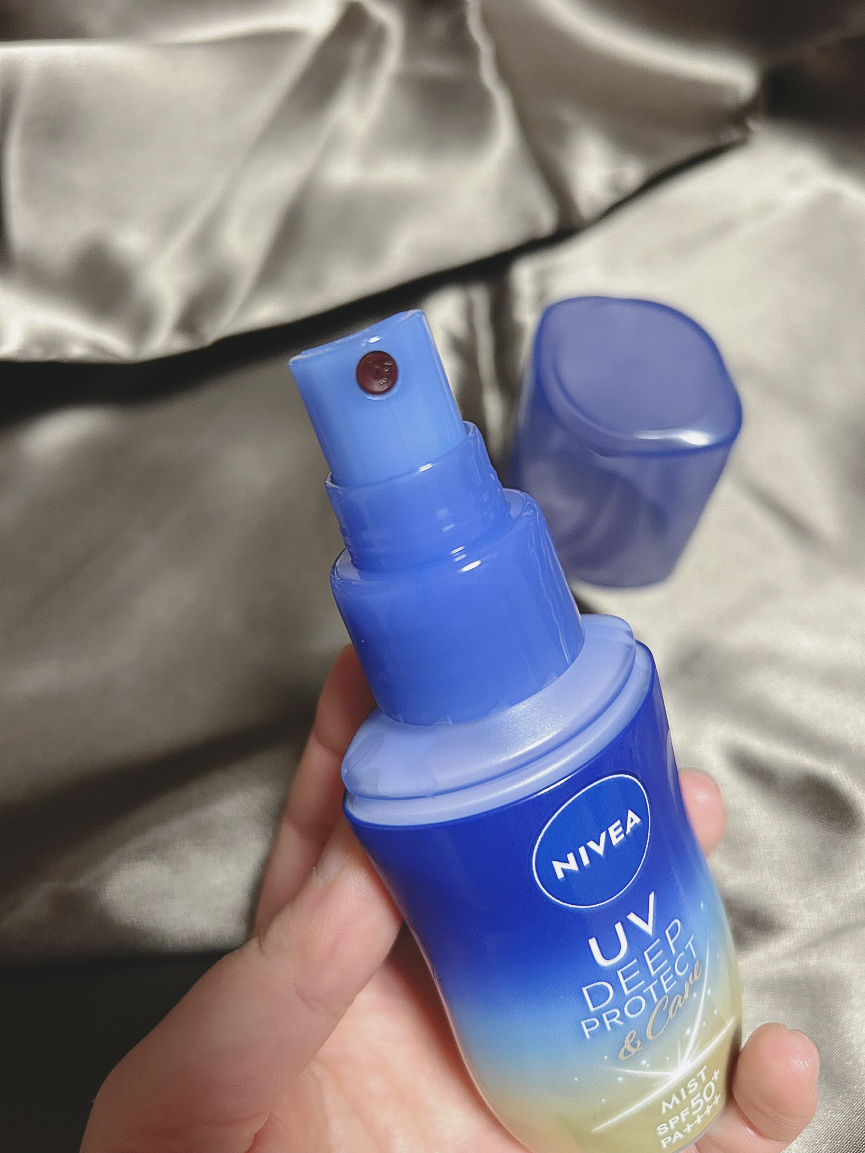 ニベア最強のUVカット効果(SPF50+/PA++++) と撥水効果 乳白色のUVミルクが瞬時にミスト化🤍🤍🤍 シュッとすれば、細かなミストがふわっと肌にのり、ツヤをまとってぴたっと密着。 ノンガスのミストタイプで持ち運びやすく、外出時、首・手の甲・腕回り・足首・髪といった大きな部分から細かな部分まで、シュッとスプレーするだけなので、塗り直しが楽になりました😎✨