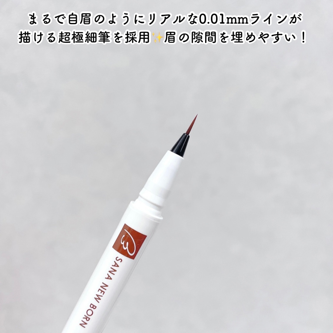 美眉になりたい方、必見! 'あの'「サナニューボーン」から新作リキッドアイブロウが出たよ📣🤍⸝⋆ 流星級の0.01mmラインでまるで自眉のようなリアルな質感👀✨ 毎日のメイクで取り入れやすいカラー展開なのも私の推しポイント💡