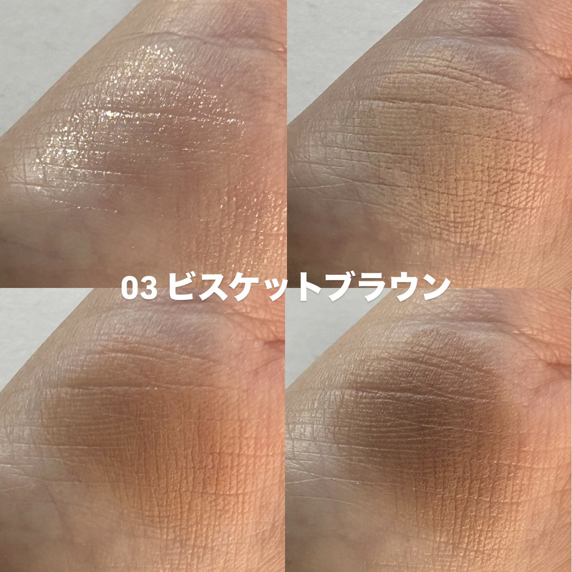 - 01 オレンジガナッシュ A:ジメチコン、タルク、トリ(カプリル酸/カプリン酸)グリセリル、(ジメチコン/ビニルジメチコン)クロスポリマー、カルナウバロウ、クロルフェネシン、デヒドロ酢酸Na、ラウロイルリシン、トコフェロール、スクワラン、ホホバ種子油、マイカ、ホウケイ酸(Ca/Al)、酸化チタン、酸化鉄、酸化スズ、シリカ B・C・D:タルク、リンゴ酸ジイソステアリル、ジメチコン、ジエチルヘキサン酸ネオペンチルグリコール、シリカ、ヘキサ(ヒドロキシステアリン酸/ステアリン酸/ロジン酸)ジペンタエリスリチル、クロルフェネシン、デヒドロ酢酸Na、水酸化Al、セスキイソステアリン酸ソルビタン、ミリスチン酸亜鉛、トコフェロール、スクワラン、ホホバ種子油、マイカ、酸化鉄、酸化チタン、赤226、硫酸Ba 02 ドライローズ A:ジメチコン、タルク、トリ(カプリル酸/カプリン酸)グリセリル、(ジメチコン/ビニルジメチコン)クロスポリマー、カルナウバロウ、クロルフェネシン、デヒドロ酢酸Na、ラウロイルリシン、トコフェロール、スクワラン、ホホバ種子油、マイカ、ホウケイ酸(Ca/Al)、酸化チタン、酸化鉄、酸化スズ、グンジョウ B・C・D:タルク、リンゴ酸ジイソステアリル、ジメチコン、ジエチルヘキサン酸ネオペンチルグリコール、シリカ、ヘキサ(ヒドロキシステアリン酸/ステアリン酸/ロジン酸)ジペンタエリスリチル、クロルフェネシン、デヒドロ酢酸Na、水酸化Al、セスキイソステアリン酸ソルビタン、ミリスチン酸亜鉛、トコフェロール、スクワラン、ホホバ種子油、マイカ、酸化鉄、酸化チタン、赤226、硫酸Ba、グンジョウ 03 ビスケットブラウン A:ジメチコン、タルク、トリ(カプリル酸/カプリン酸)グリセリル、(ジメチコン/ビニルジメチコン)クロスポリマー、カルナウバロウ、クロルフェネシン、デヒドロ酢酸Na、ラウロイルリシン、トコフェロール、スクワラン、ホホバ種子油、マイカ、ホウケイ酸(Ca/Al)、酸化チタン、酸化鉄、酸化スズ B・C・D:タルク、リンゴ酸ジイソステアリル、ジメチコン、ジエチルヘキサン酸ネオペンチルグリコール、シリカ、ヘキサ(ヒドロキシステアリン酸/ステアリン酸/ロジン酸)ジペンタエリスリチル、ミリスチン酸亜鉛、クロルフェネシン、デヒドロ酢酸Na、水酸化Al、セスキイソステアリン酸ソルビタン、トコフェロール、スクワラン、ホホバ種子油、マイカ、酸化鉄、酸化チタン、硫酸Ba