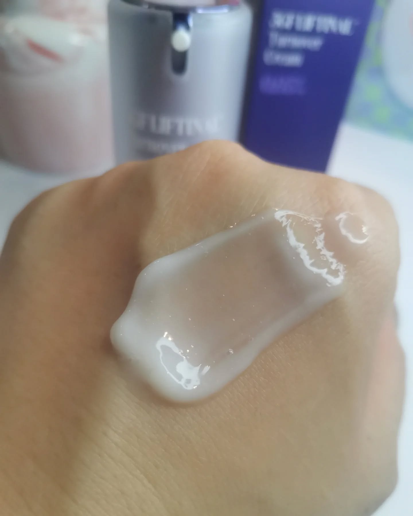 サラサラした美容液はスッとお肌に馴染んでく🤍 ベタつきは全然感じなくてさっぱりした感じ☺️ 毛穴の面積の縮小する引き締め効果があってしっかり効果を感じれるスキンケアみたいやから毛穴&弾力ケアに💜 レチノール毎晩使ってるけどホンマにお肌がパンっとはったように艶がでるから大好き☺️✌🏻