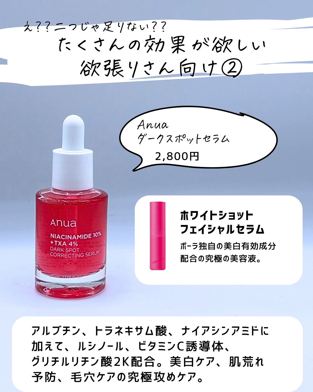 何度もオススメしたい、anuaのダークスポットセラム!!! これは間違いなく攻め攻めの美容液! これが2800円で買えるのはヤバい。成分も豊富だし特に美白ケアを攻めたい人にオススメ!🍅