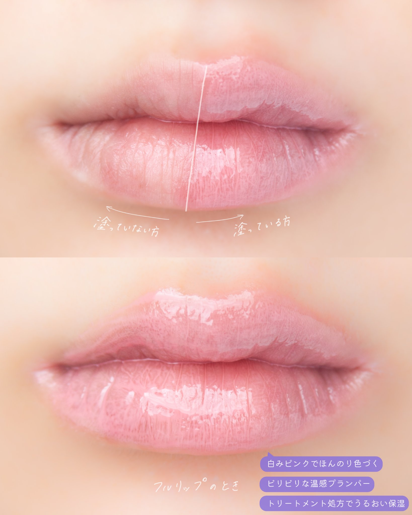 - ビリビリ感*1!ぷっくり*2ハリ感リップ! ビリビリ感*1がクセになる塗り心地・塗るだけ簡単ボリュームアップ*2演出・リップトリートメント処方・リップがコップにつきにくいリップコート効果・うるおい保湿成分配合 *1バニリルブチル(温感成分) *2メイクアップ効果による