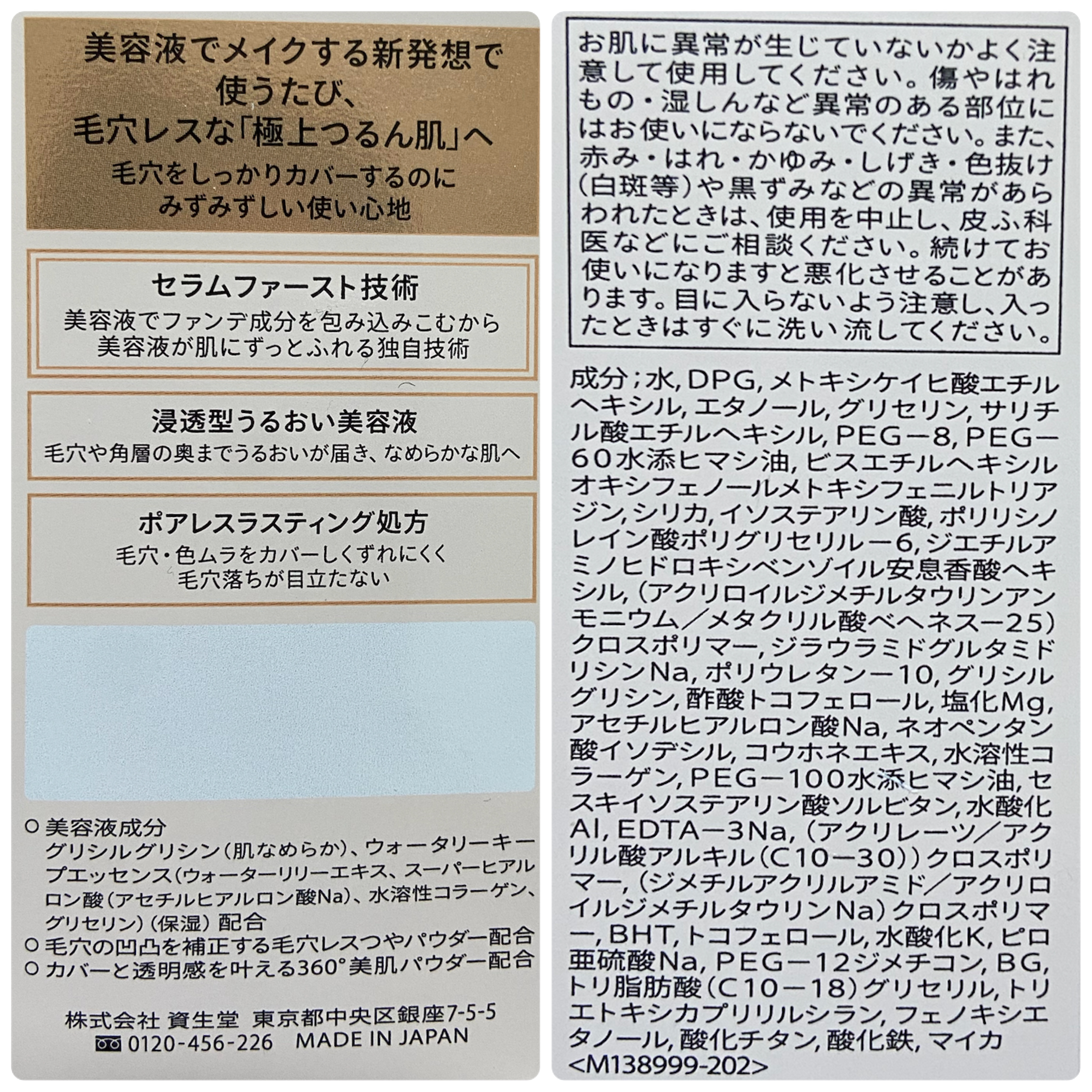 - 発売以降ずっと売上No.1*のファンデ美容液が進化! 美容保湿成分の配合量をアップ** 美容液でメイクする新発想で 使うたび、毛穴レスな「極上つるん肌」へ 【セラムファースト技術搭載】 ファンデに美容液を配合するのではなく美容液でファンデ成分をふわっとくるみ、安定的に閉じ込める、ミクロレベルのカプセル化に成功。 つけている間、ファンデではなく美容液が肌にふれ続けけます。 <POINT01>浸透型うるおい美容液 美容液が毛穴や角層までうるおいを届け、なめらかな肌が続きます。 <POINT02>ポアレスラスティング処方 フルカバーしながら、内側からうるおったようなみずみずしいつやを演出。 毛穴落ちが目立たず、1日中つけたての美しい仕上がりが続きます***。 *インテージSRI+ ファンデーション市場(リキッド形状) 期間:2022/2~2024/10 推計販売規模(金額) ブランドランキング **従来比 ***13時間化粧もち(毛穴の目立ちのなさ・毛穴落ちのなさ・つや・透明感・カバー力・よれのなさ・うすれのなさ・皮脂くずれのなさ)データ取得済み(当社調べ。効果には個人差があります。)