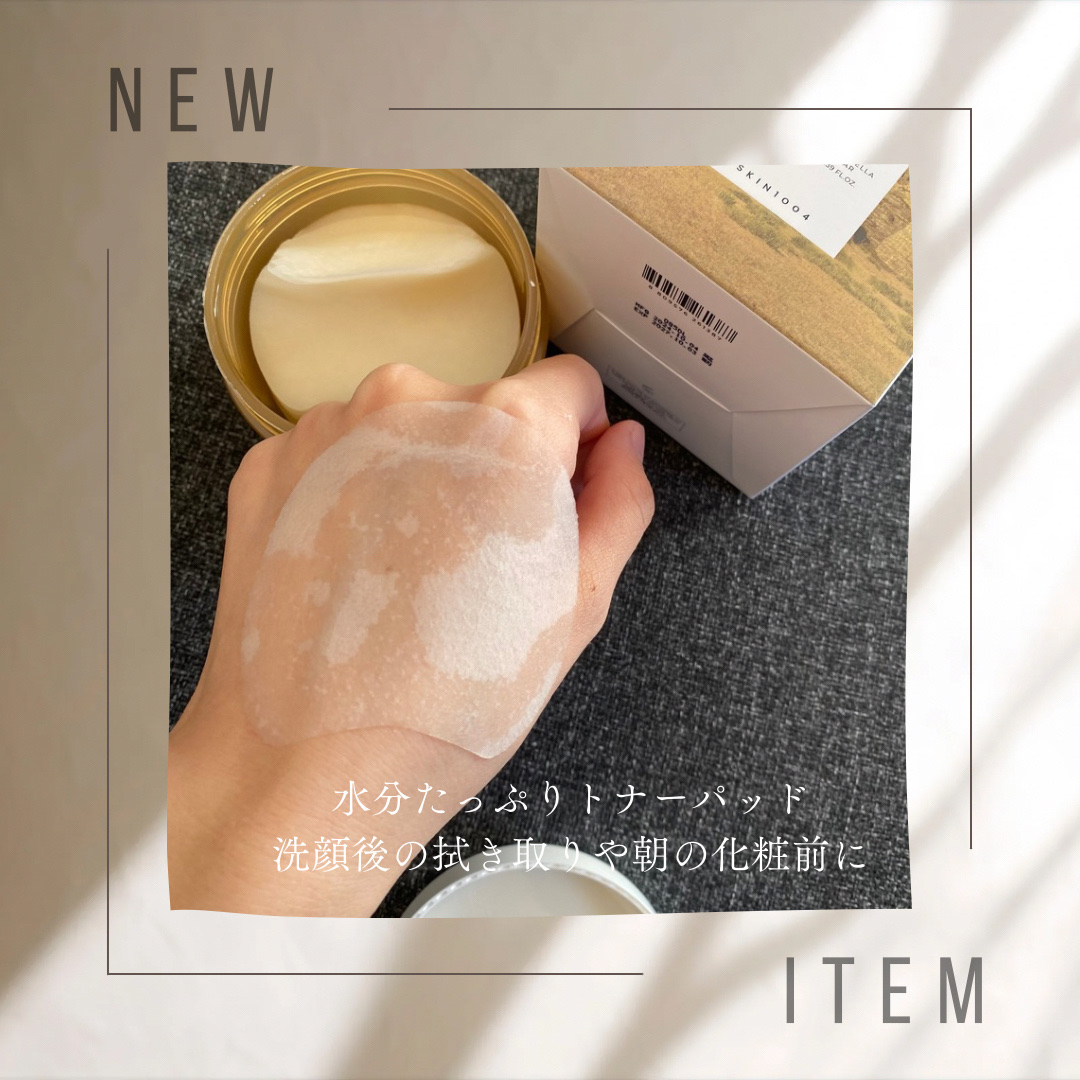 時間がない朝にも1分で水分チャージできる"じゅわぴたパッド"SKIN1004の「センテラクイックカーミングパッド」だよ刺激を受けたお肌にもやさしくケアできるSKIN1004のスキンケアが大好きで、このカーミングパッドもそのひとつ。パッドはお肌...