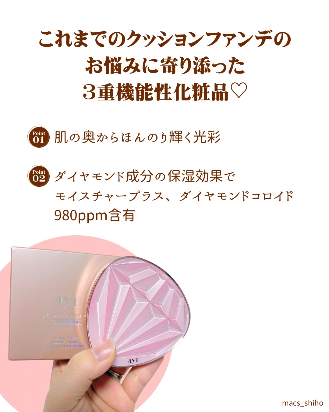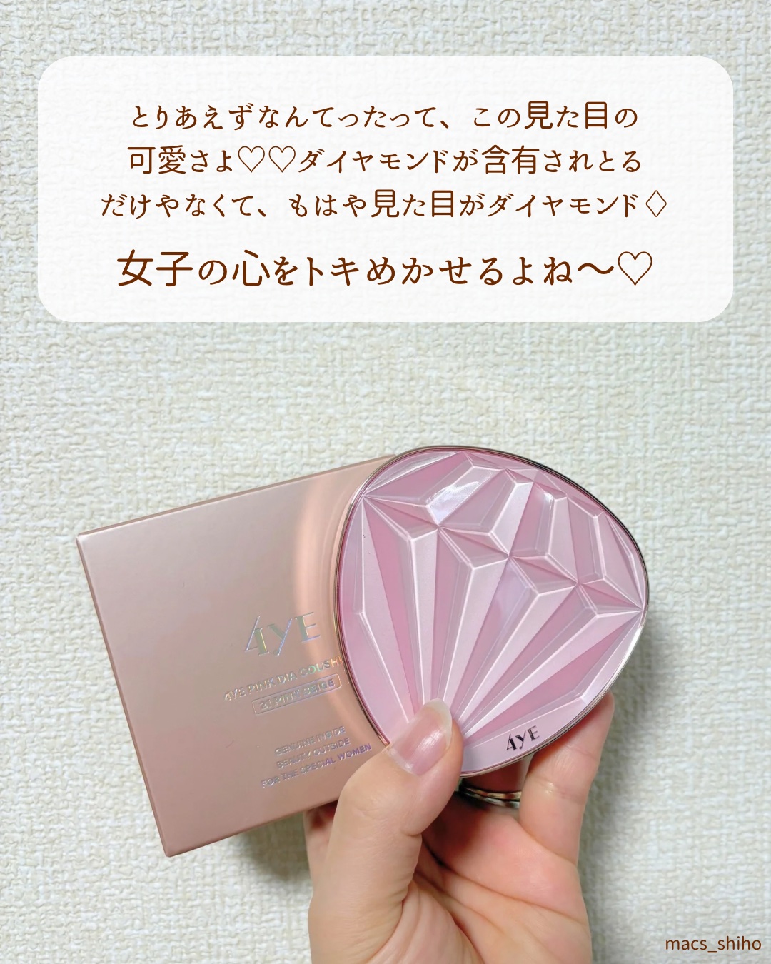 立体的なピンクのダイヤモンドが素敵なファンデ🎀🪞 ツヤ系仕上がりなのに、カバー力結構あるのが最高*.+゚𓍯 マスクして1日過ごしても、過度なマスク移りやヨレなどは気にならなかった🔅 最近結構使ってるファンデです⟡꙳ ぜひチェックしてみてください🫶🏻🪄