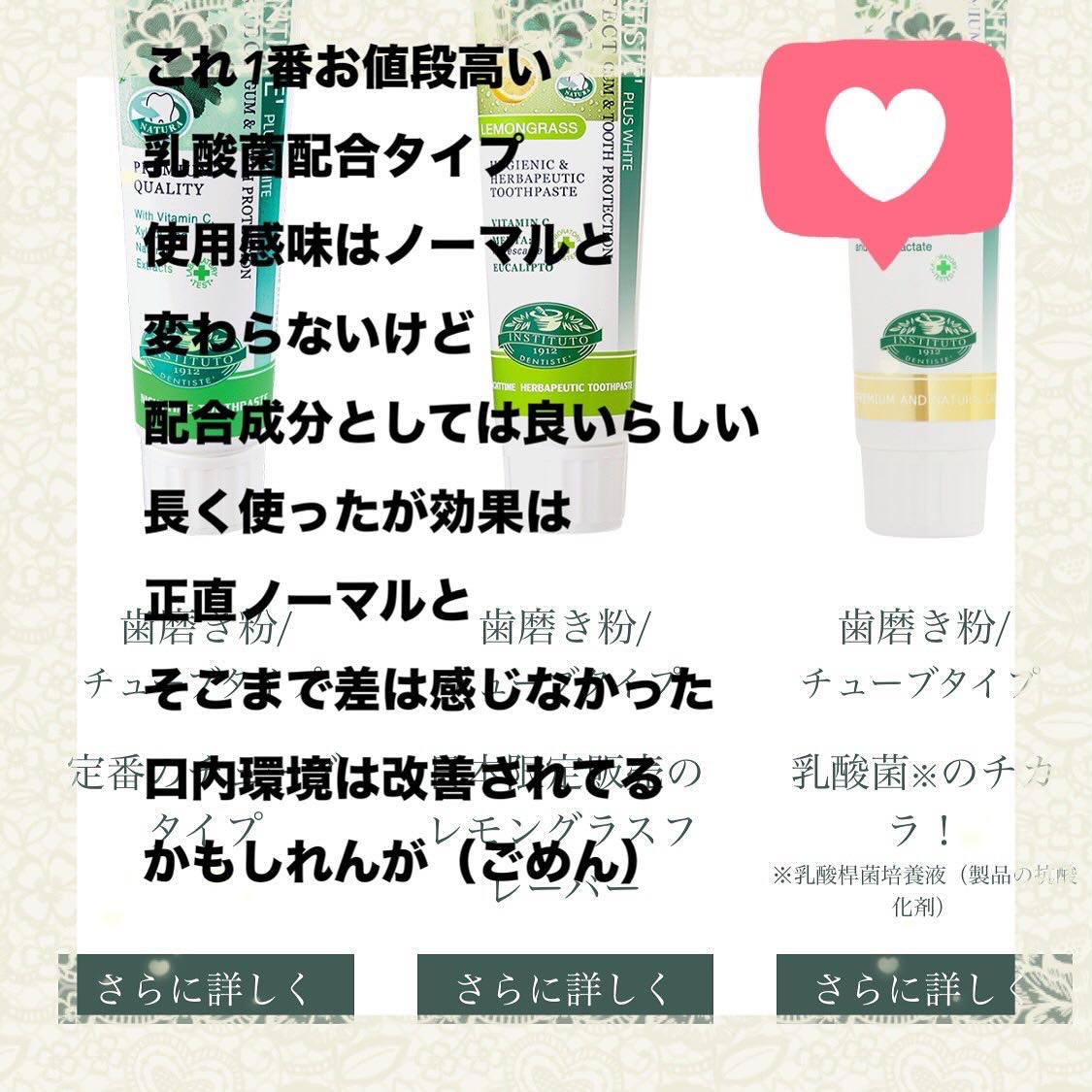 | 泡もなめらかで、口の中がスッキリしますし、歯もツルツルになって、とても使い心地の良い歯磨き粉だと思います✨ | 詳細を見る | ||
