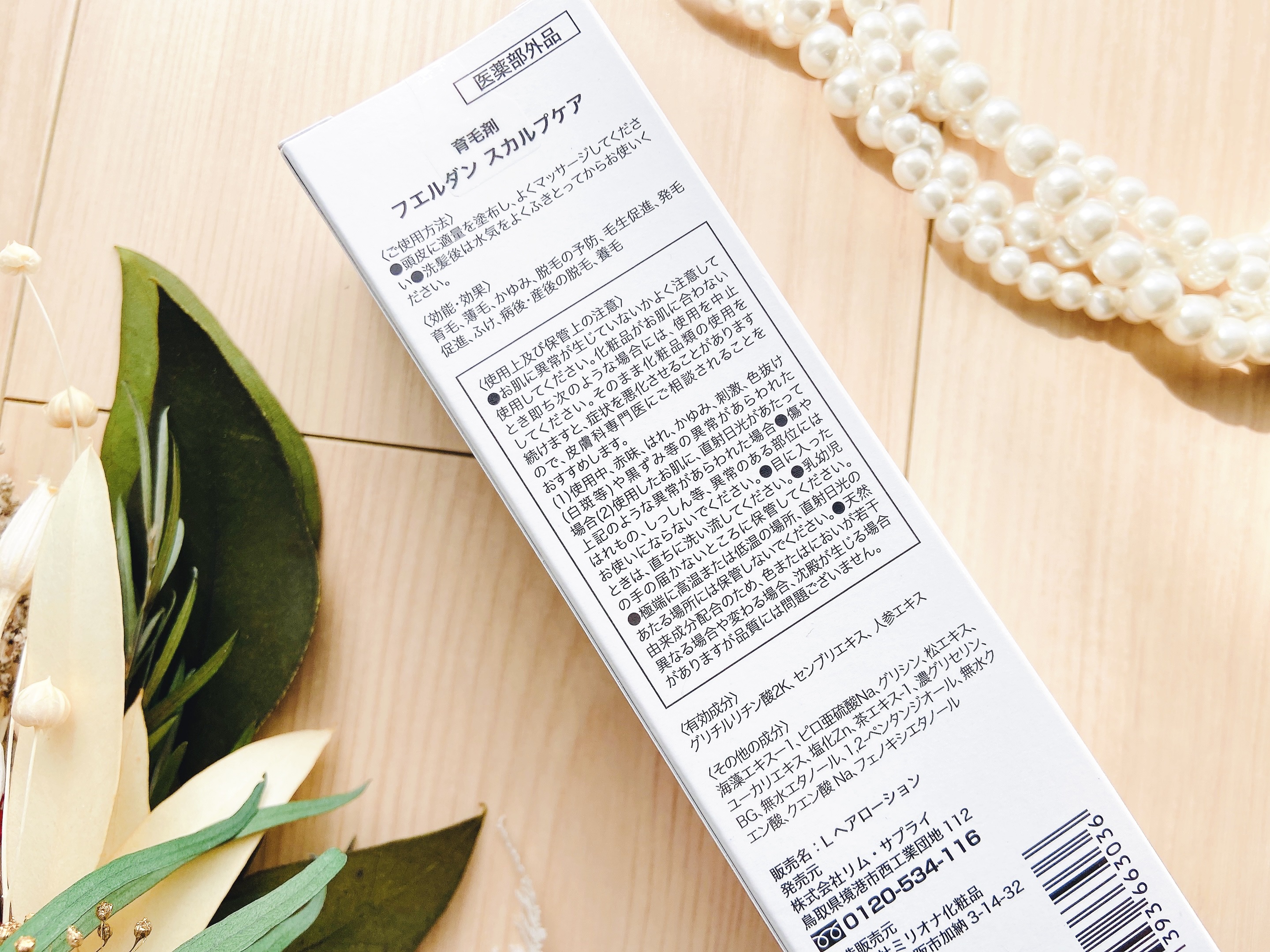 - 【医薬部外品】発毛促進、育毛、養毛、薄毛・脱毛予防、病後・産後の脱毛予防。 発毛有効成分はもちろんのこと、うるおい天然成分であるフコイダンを加える事で、頭皮環境を整える育毛剤を作りました。 余分なものは入れず、うるおいが続くフコイダンを使うことで、頭皮にやさしい育毛剤にしました。とろっとする薬用フエルダンは、垂れにくく肌馴染みもよいので、使う時に余分なストレスもかかりません。 やさしく、使いやすく、それが薬用フエルダンです。 <<有効成分配合>> 【グリチルリチン酸ジカリウム】 甘草(かんぞう)という生薬の根から抽出される成分です。頭皮を健やかに保ちます。 【センブリエキス】 リンドウ科植物センブリの全草から抽出されるエキス。血行を促進します。 【ニンジンエキス】 オタネニンジン(高麗人参)から抽出されるエキス。皮脂の過剰分泌を防ぎます。