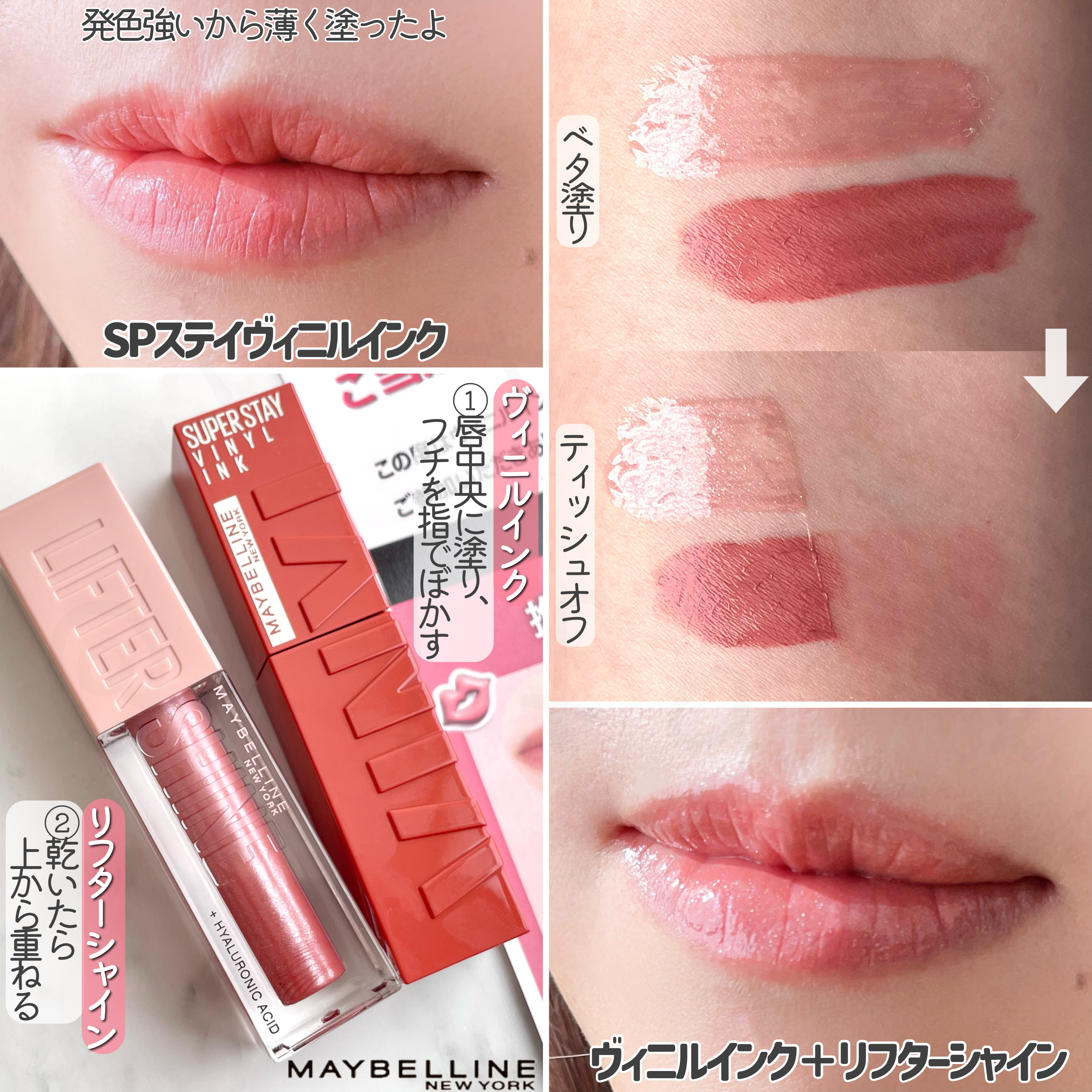 「落ちないヴィニルインク」×「ぷるっとしたリフターシャイン」で落ちないぷるツヤリップが続く※✨ 推し活でご飯食べても、おしゃべりしても落ちづらいリップでメイク崩れを気にせず、満喫できて嬉しい☺️👍🏻 ぷるっとヌードが作れるヴィニルインク60とリフターシャイン 003 使用