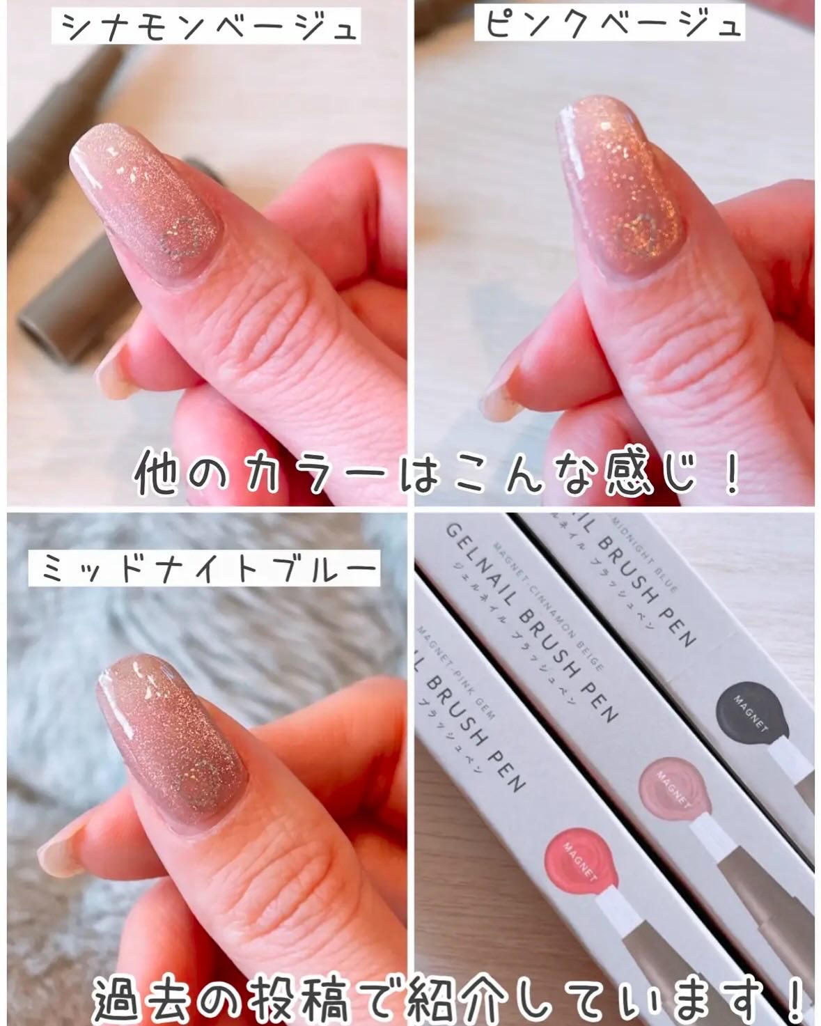 セリアのマグネットジェルは税込110円の最安値! 昨年の秋ごろ発売のカラーからリニューアルしてラメの動きがよくなっています✨ 最初に紹介した6つはリニューアルしたカラーで、 昨年発売のリニューアル前のカラーとは色味が全然違うので要注意!ラメの...