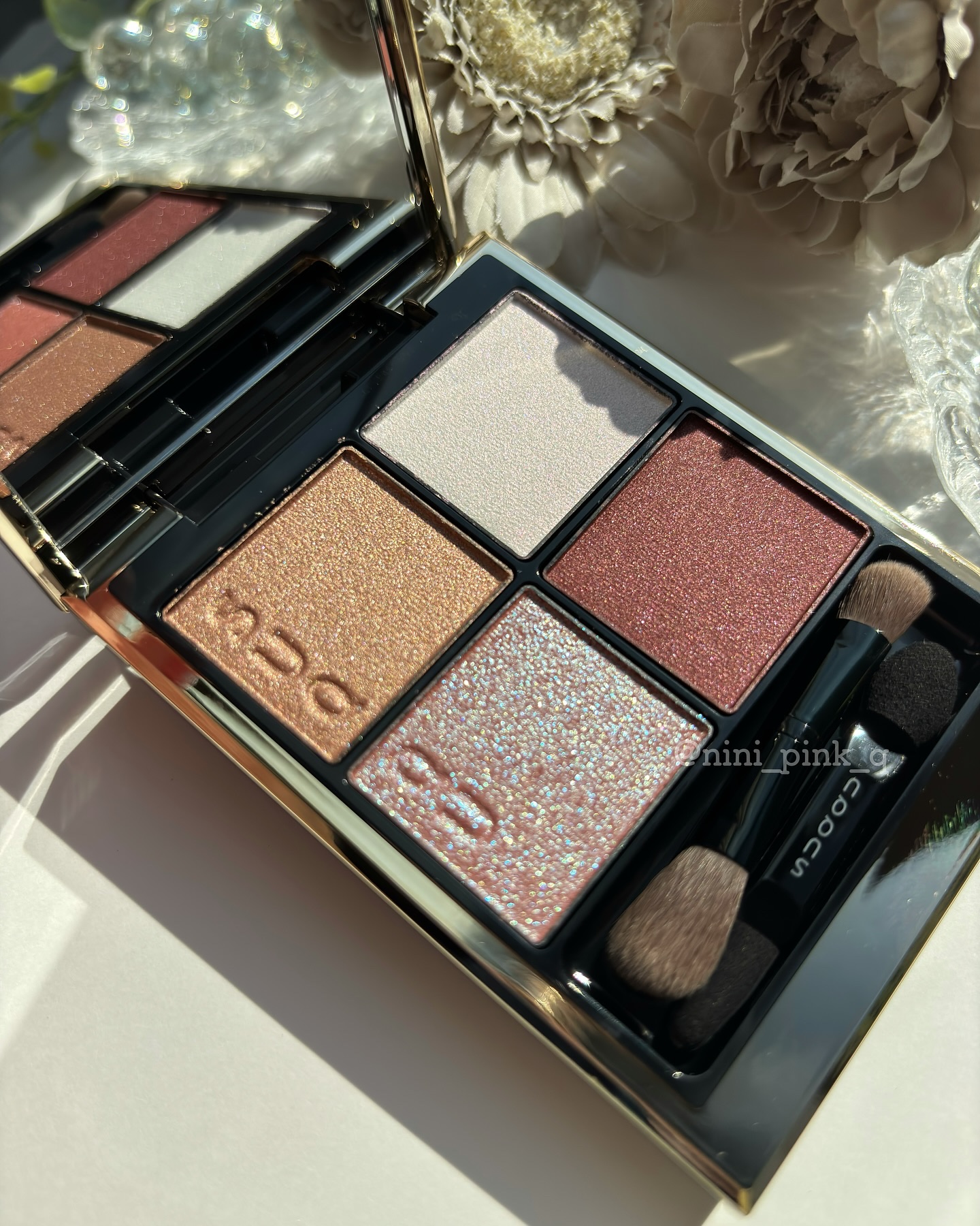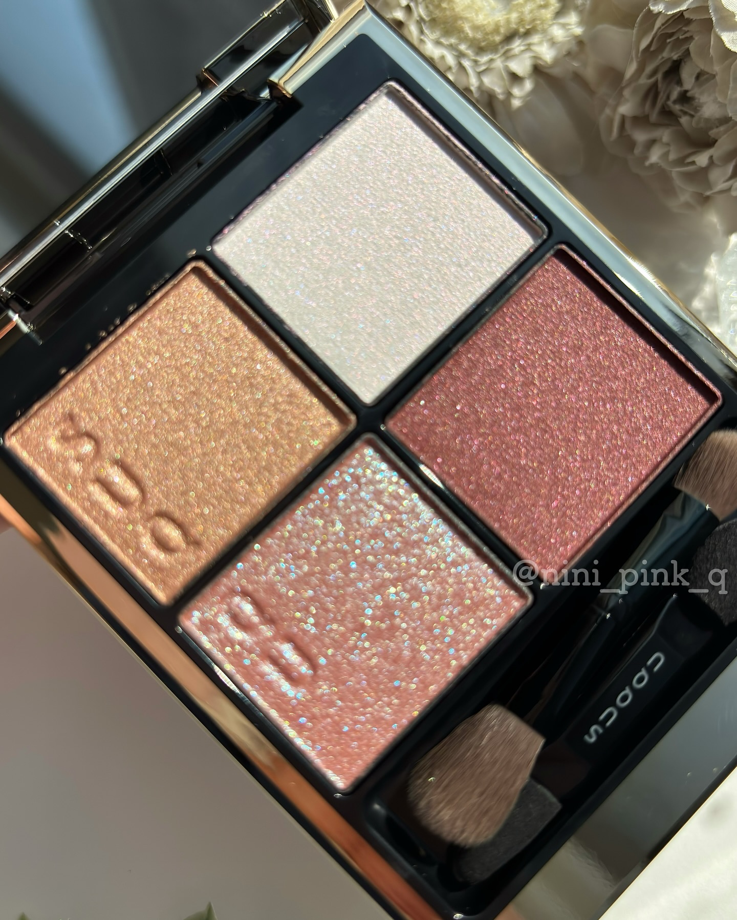 SUQQUの2025年スプリングコレクション✨️ 今回のテーマは「花屏風」✨️ 赤みと青みが行き交う、春の花を瞼にこぼしたような華やかでドレッシーなパレット。 特に左下の青ラメが美しすぎて🤦♀️ 右下のレッドブラウンは深みがあるので締め色にも🙆♀️