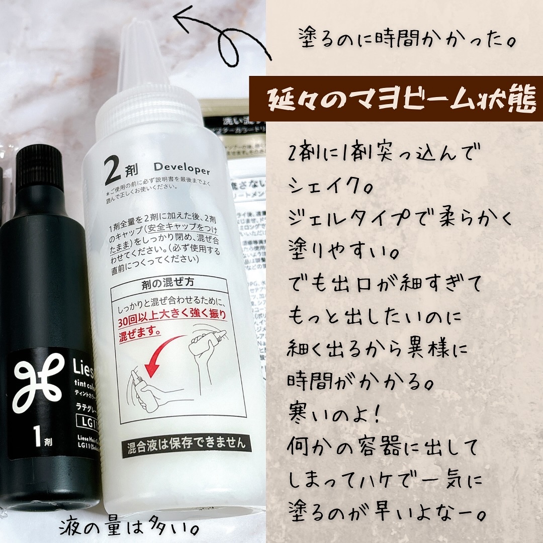\セルフカラーはこれオススメ💖/ブリーチなしでも透明感爆誕?!🫧✨Lieseティントカラージェルラテグレージュ¥1210(税込)1000円以下のカラー剤も多い中初めはちょっと高くない?って思ったけどブリーチなしで「透明感」も「濃厚...