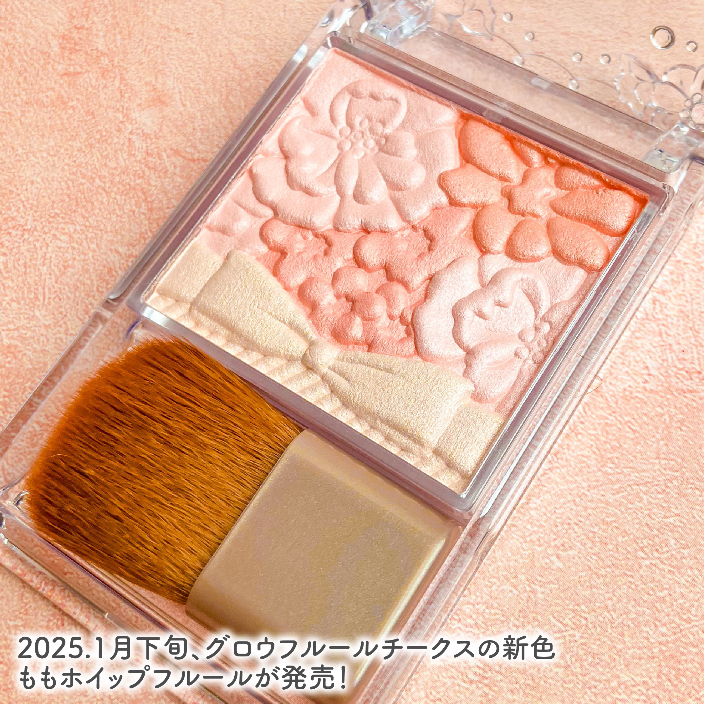 - ※デザインが順次リニューアル。尚、これにかかる商品の返品・交換は承っておりません。 ※17番はバルク位置がリニューアル。(2025年9月下旬頃より順次)尚、これにかかる商品の返品・交換は承っておりません。 素肌のようなツヤ感が思いっきり可愛くハッピーなトレンドチーク♥ みずみずしく華やかな花びらのように、ハッピー感のある笑顔が可愛く咲く♥ パウダーなのに粉っぽくならず、まるでクリーム級の透明感&とろけるように柔らかくお肌に密着!! 透明感のあるツヤが、可愛らしくイキイキとした印象に見せてくれます♪ ◆毛量たっぷり!ふわふわブラシ付