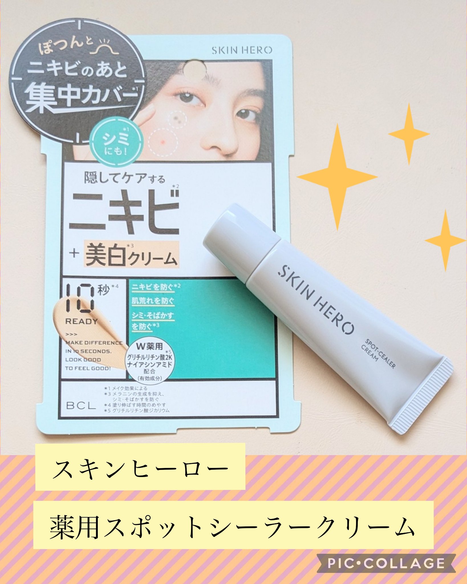 BCLカンパニー様からいただきましたスキンヒーロー薬用スポットシーラークリーム【医薬部外品】 10g¥990(税込)2月4日発売!ニキビ跡やシミに集中カバー*メイクアップ効果によるグリーンパール配合※で赤みカバー※雲母チタン(着色剤)、メチル...
