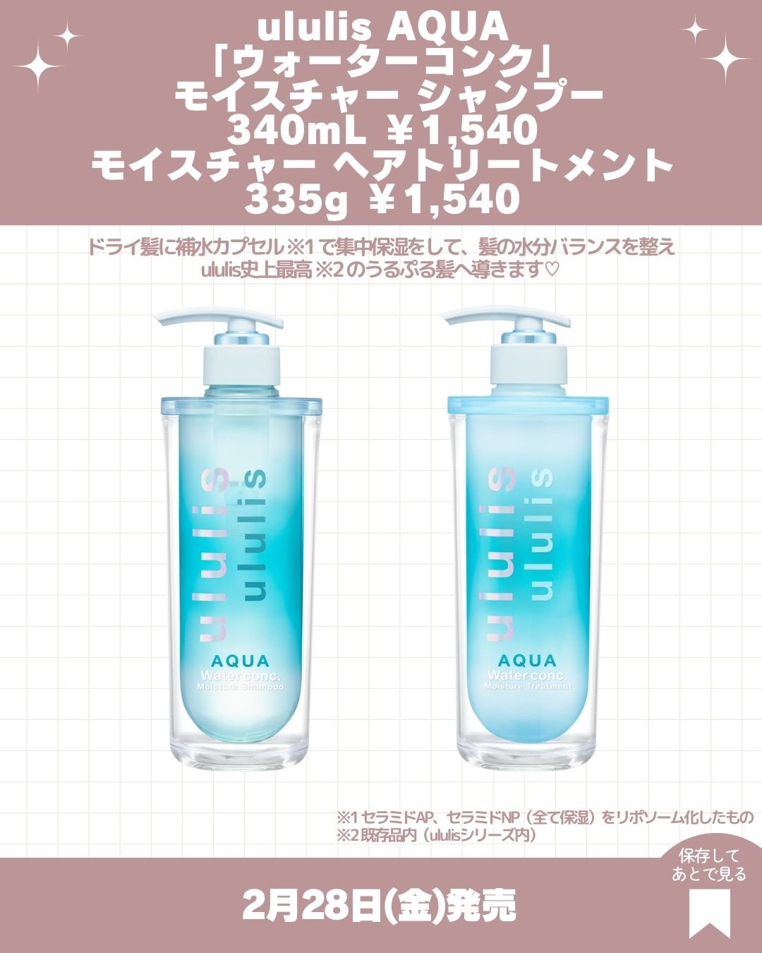 ululis ウォーターコンク モイストシャンプー/ヘアトリートメント | 1,540円 |