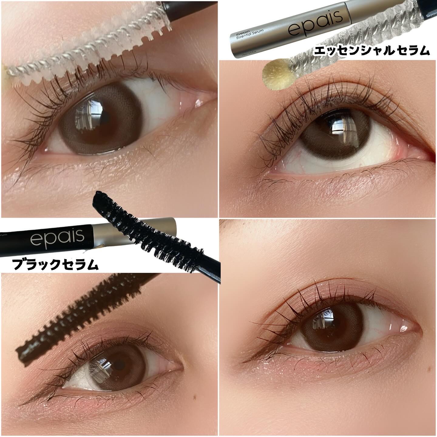 15mlと大容量のエッセンシャルセラムはボールチップとCカールブラシでまつ毛に塗りやすく眉毛やヘアラインにも使えるマルチセラム ブラックセラムは日中用ケアとメイクアップが同時にできるアイテムで透け感のある黒だけど塗ると目元がはっきりする色☺︎ イージーウォッシャータイプだからまつ毛に負担なく水でスルッと落ちる!