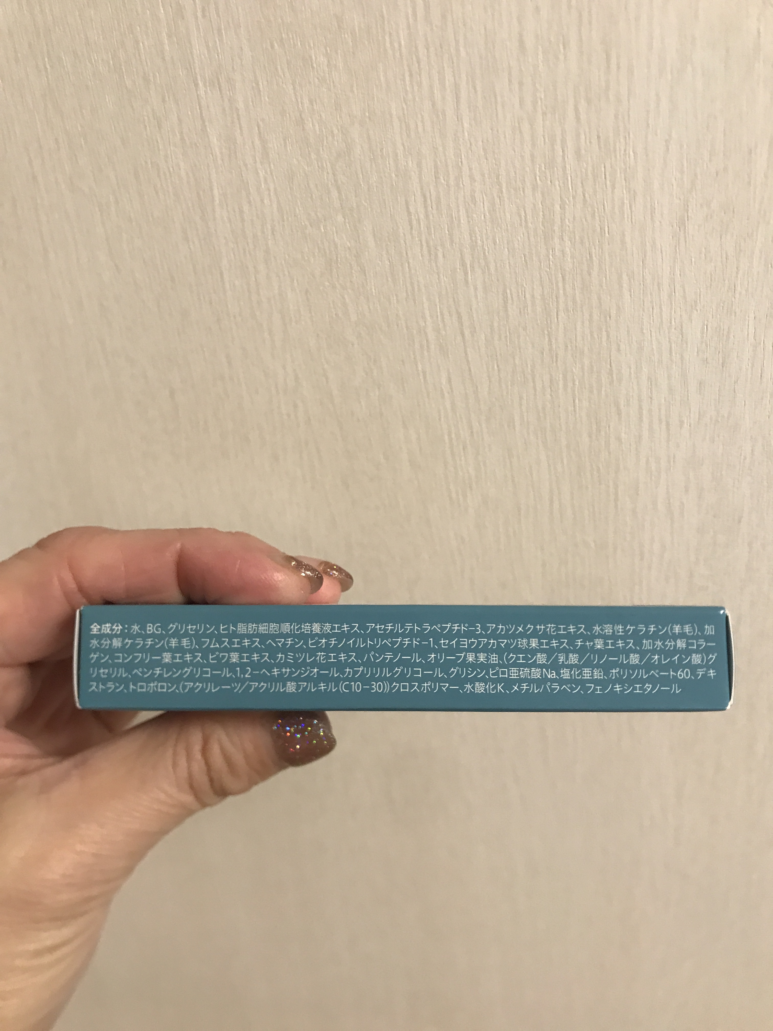 - <アイラッシュセラム> 水、BG、グリセリン、ヒト脂肪細胞順化培養液エキス、アセチルテトラペプチド-3、アカツメクサ花エキス、水溶性ケラチン(羊毛)、加水分解ケラチン(羊毛)、フムスエキス、ヘマチン、ビオチノイルトリペプチド-1、セイヨウアカマツ球果エキス、チャ葉エキス、加水分解コラーゲン、コンフリー葉エキス、ビワ葉エキス、カミツレ花エキス、パンテノール、オリーブ果実油、(クエン酸/乳酸/リノール酸/オレイン酸)グリセリル、ペンチレングリコール、1,2-ヘキサンジオール、カプリリルグリコール、グリシン、ピロ亜硫酸Na、塩化亜鉛、ポリソルベート60、デキストラン、トロポロン、(アクリレーツ/アクリル酸アルキル(C10-30))クロスポリマー、水酸化K、メチルパラベン、フェノキシエタノール