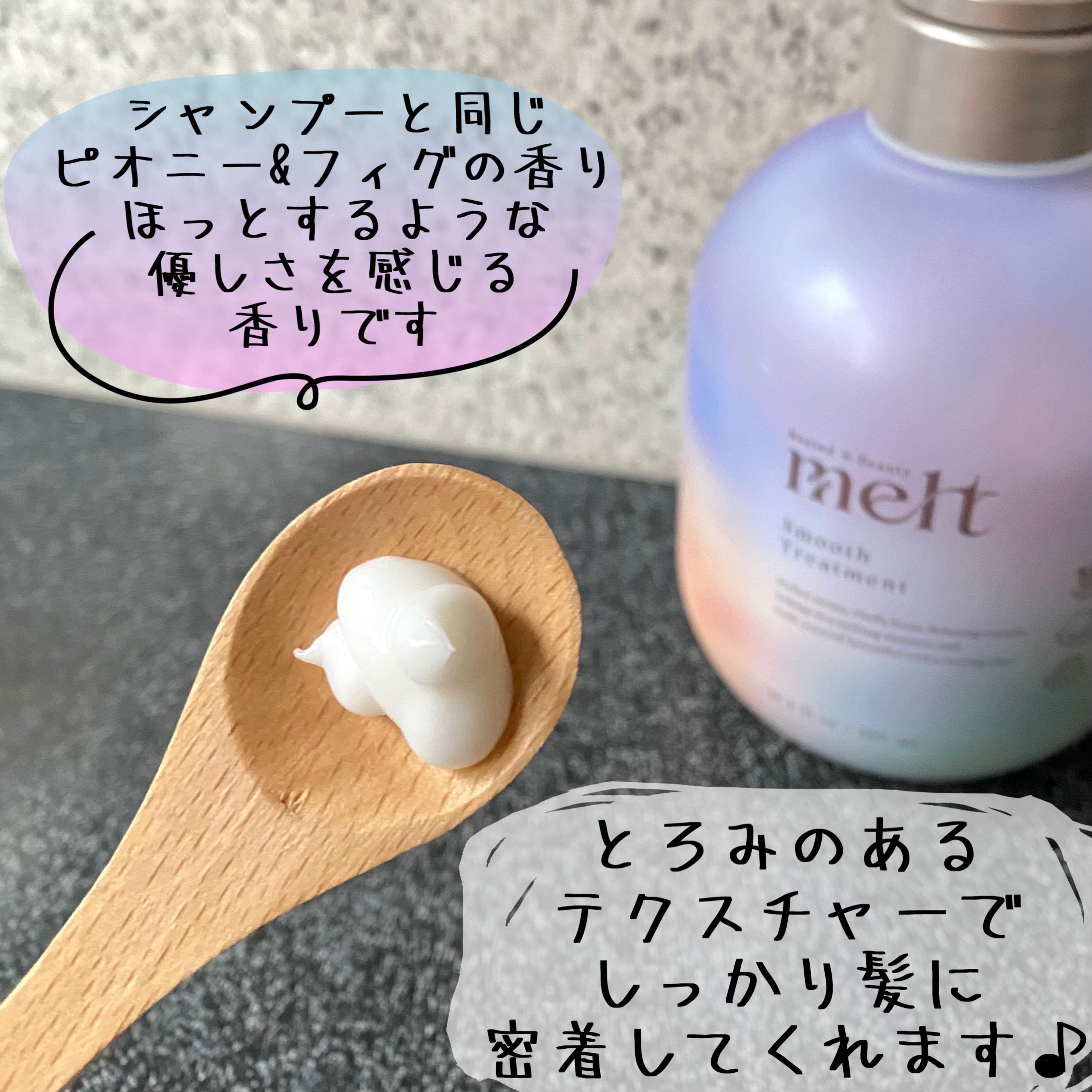 花王さまからいただきました✨3月15日に発売されるmeltのスムースシリーズ🩷meltスムースシャンプー🩷meltスムーストリートメントうねりケアのシリーズです✨どちらもピオニー&フィグの香り私のパサパサうねうねの髪のうねりが抑えられまとまっ...