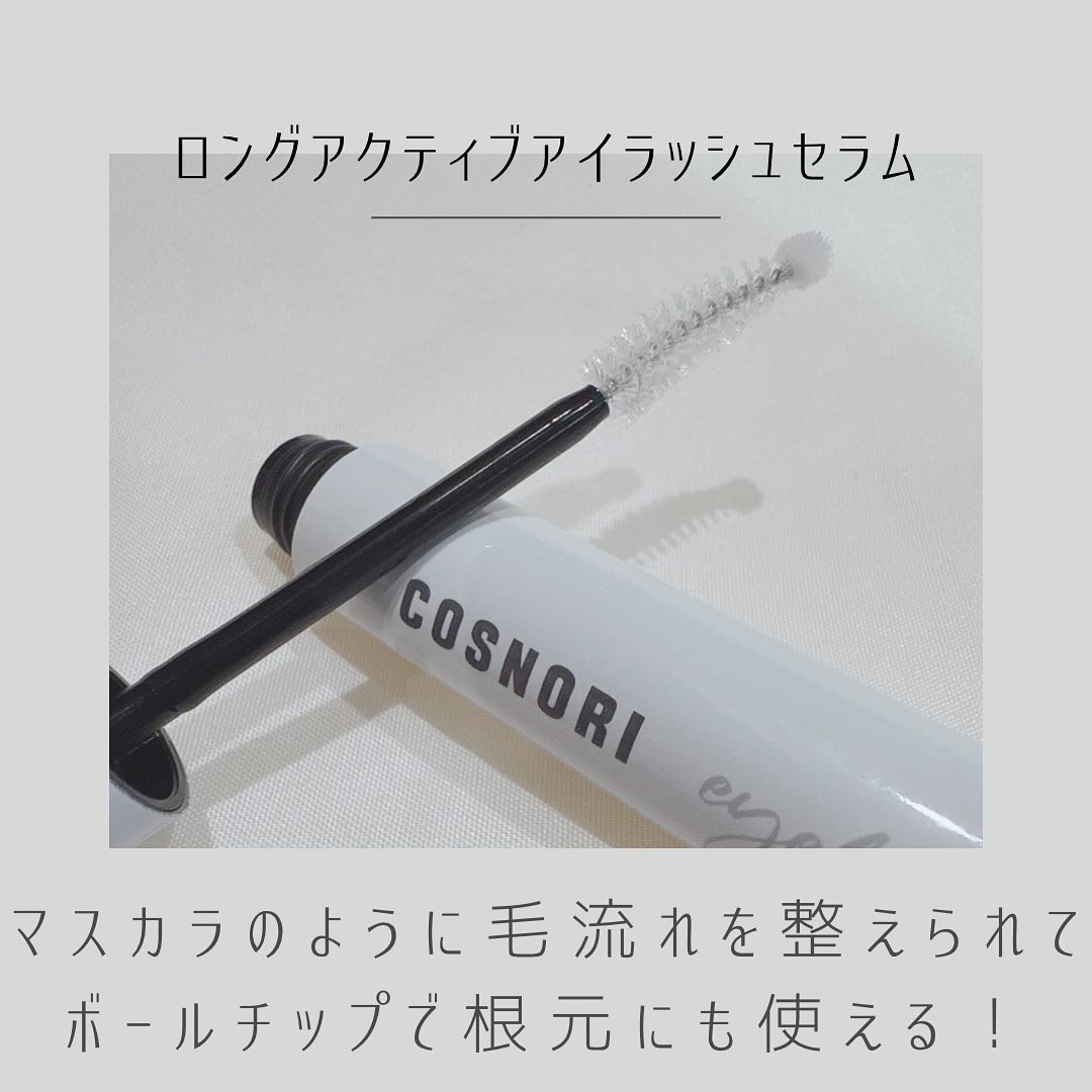 マツエクずっとしてたいけど、まつ毛が弱ってて休憩中🥲だから最近は“育てながら盛る”が私のまつ育ルーティン💪✨⸻💛ロングアクティブアイラッシュセラムコスノリのまつ毛美容液で1番人気のまつ毛美容液👑Cカール型のブラシで、先端がボールチップに...
