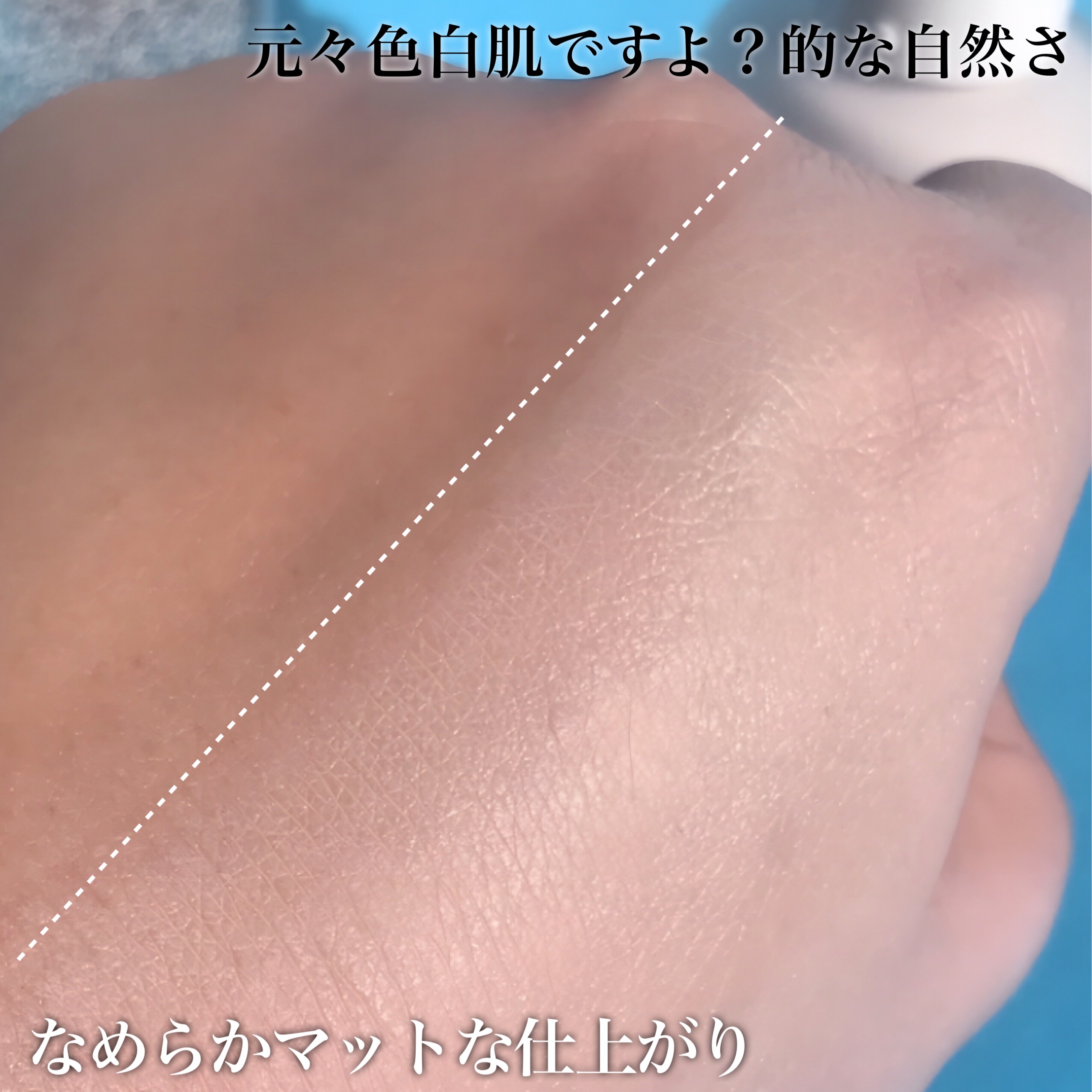 めちゃくちゃ伸びがいい さらっとした軽いテクスチャー 1プッシュだと多かったので、少しずつ手に取ってから広げていくと仕上がりが綺麗です◎ 最初白くてビックリするんだけど馴染ませると全然大丈夫だった! 私もともと色白ですけど?的な自然な仕上がりに。かなりマット寄り! ポイントメイクが映える映える… リップやチークをのせるのが楽しくなります♡