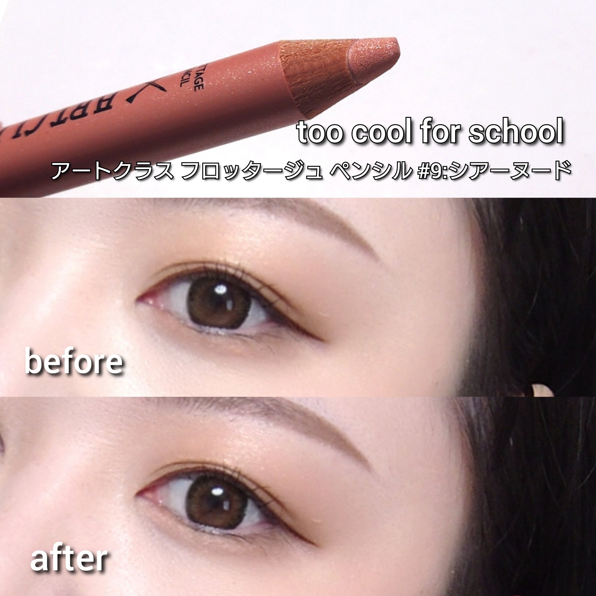 toocoolforschoolアートクラスフロッタージュペンシル♡09シアーヌード♡10クラッシーフィグ♡17タロシフォン涙袋としても使えて、指でぼかしてアイシャドウとしても使えます❤また、チークとしても使えるから凄く便利なペンシル‼テクニ...