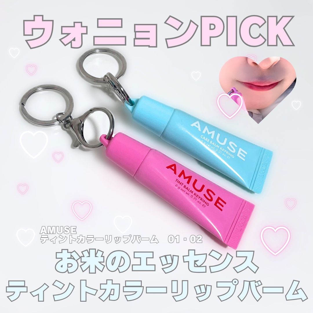 🤍AMUSEケアバームキーリング01ライス(透明なクリアカラー)02ハッピーガール(ウォニョンPICK)乾燥する季節でもウォニョンみたいなぷるぷるリップになりたい❥✰2種のクリア&ティントリップバームのAMUSE新商品✰いつでも手軽に保湿&発...