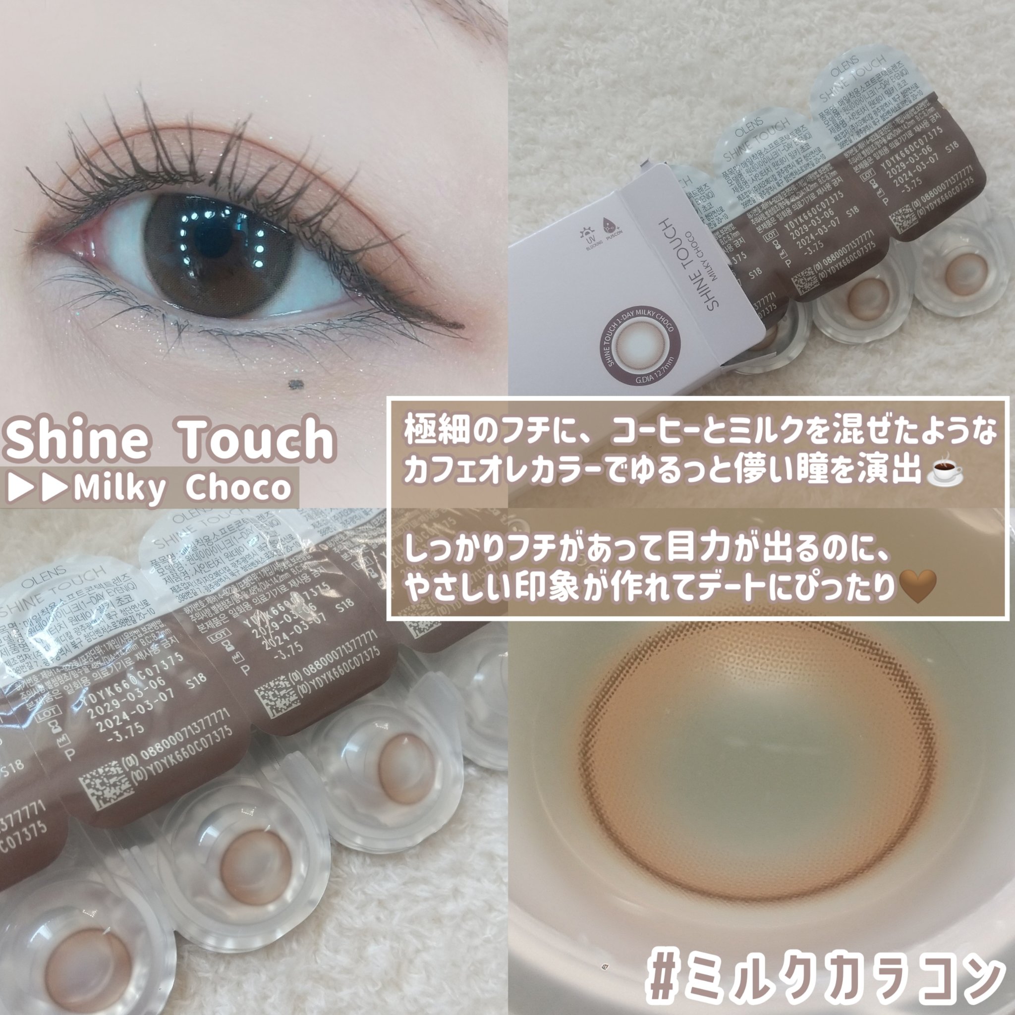 ふんわりとしたチョコカラーとぼかしフチで最強の色素薄い瞳を演出 極細フチとミルクを混ぜたようなカラー感でゆるっと儚い瞳に演出 瞳にかなり馴染むので、こっそり可愛く盛れるチョコカラコン♡