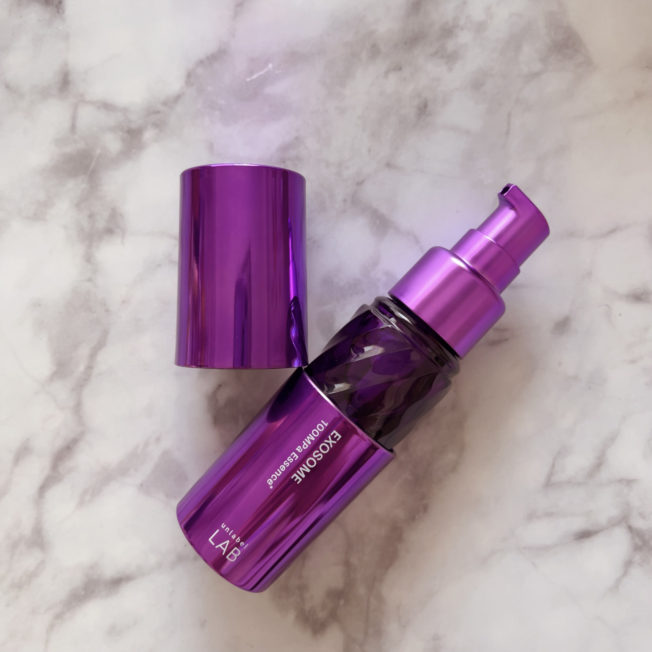 肌の弾力やエイジングケアが気になる方向けのアンレーベルラボの新しい美容液です。 重厚感のあるパープルボトル。プッシュポンプ式で使いやすいです。 結構濃厚テクスチャーですが、洗顔が一番最初に使うのでぐんと馴染んでいくような使い心地で気に入りました!