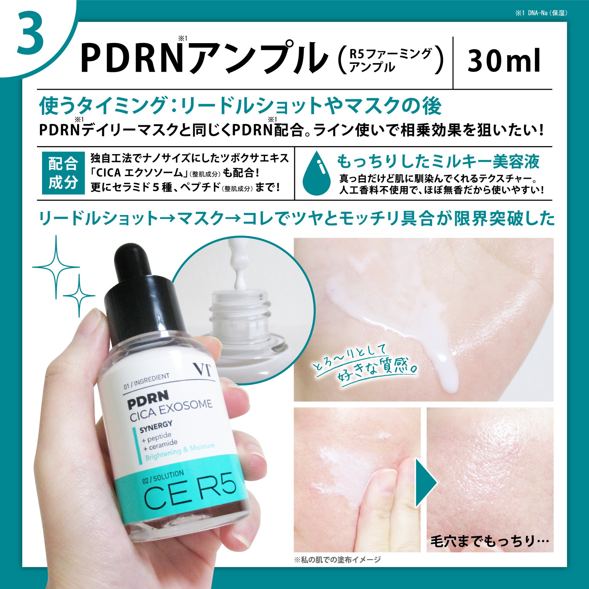 VTさんのPDRNは、植物性由来で優しい使い心地なのが特徴✨おまけに、リードルショットやマスク、美容液などいろいろなPDRNアイテムがあるから自分にあったものを選びやすい! リードルショットで、美容成分が通る軌道を作ってあげることで、次に使う美容成分の肌角質層までの浸透をよりサポートしてくれる! こちらは、30枚入りで¥2,640(参考価格)と1日10円以下で使えちゃう👏高コスパアイテム✨