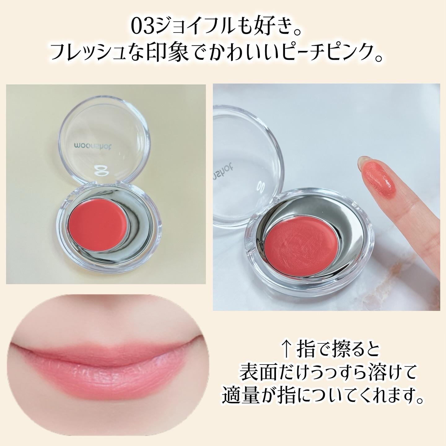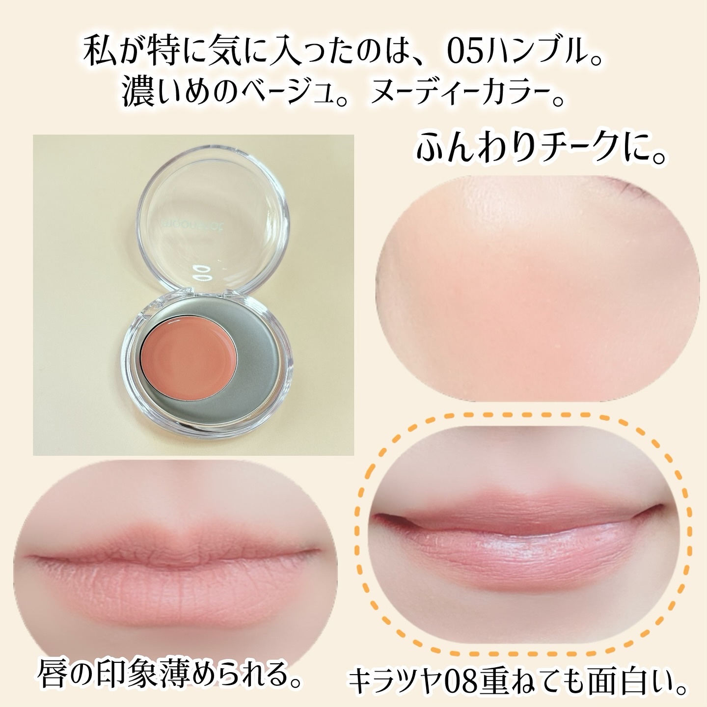 | クリームチークランキング第1位 | 指で軽く押すと若干凹むくらいのぷにっと感。ほんのり自然な血色感って感じで可愛い! | 詳細を見る | |