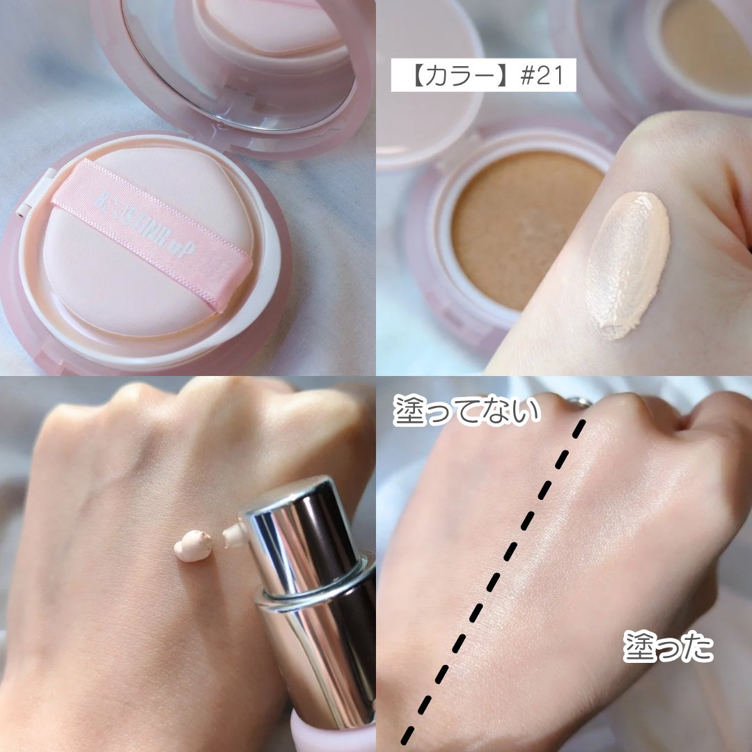 通称『女優クリーム』と呼ばれている下地はローズ、ラベンダー、ミントの3色あり、今回はローズを使用しました。下地は軽いテクスチャで伸びも良いと感じました。 クッションファンデは、カバー力も割とあるので、下地でカバーしきれなかった毛穴や赤みなどをしっかりカバーできました。 また、SPF30で紫外線対策もできるのも嬉しいポイントだと感じました。