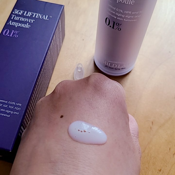 こちらは紫のパッケージが目印のマイルドラボの5GF リフティナルシリーズを使いました。毛穴削除アンプルと言われているアイテム!毛穴をどうにかしたいって悩んでいる方に🌸 レチノール配合されているので💫初めの2週間は3日に1回・夜に使用💫適応期間後は1日おきの夜に使用と条件がありますのでご注意ください! 刺激が強いのかと思ったのですが、顔に塗っても優しい塗り心地でした。
