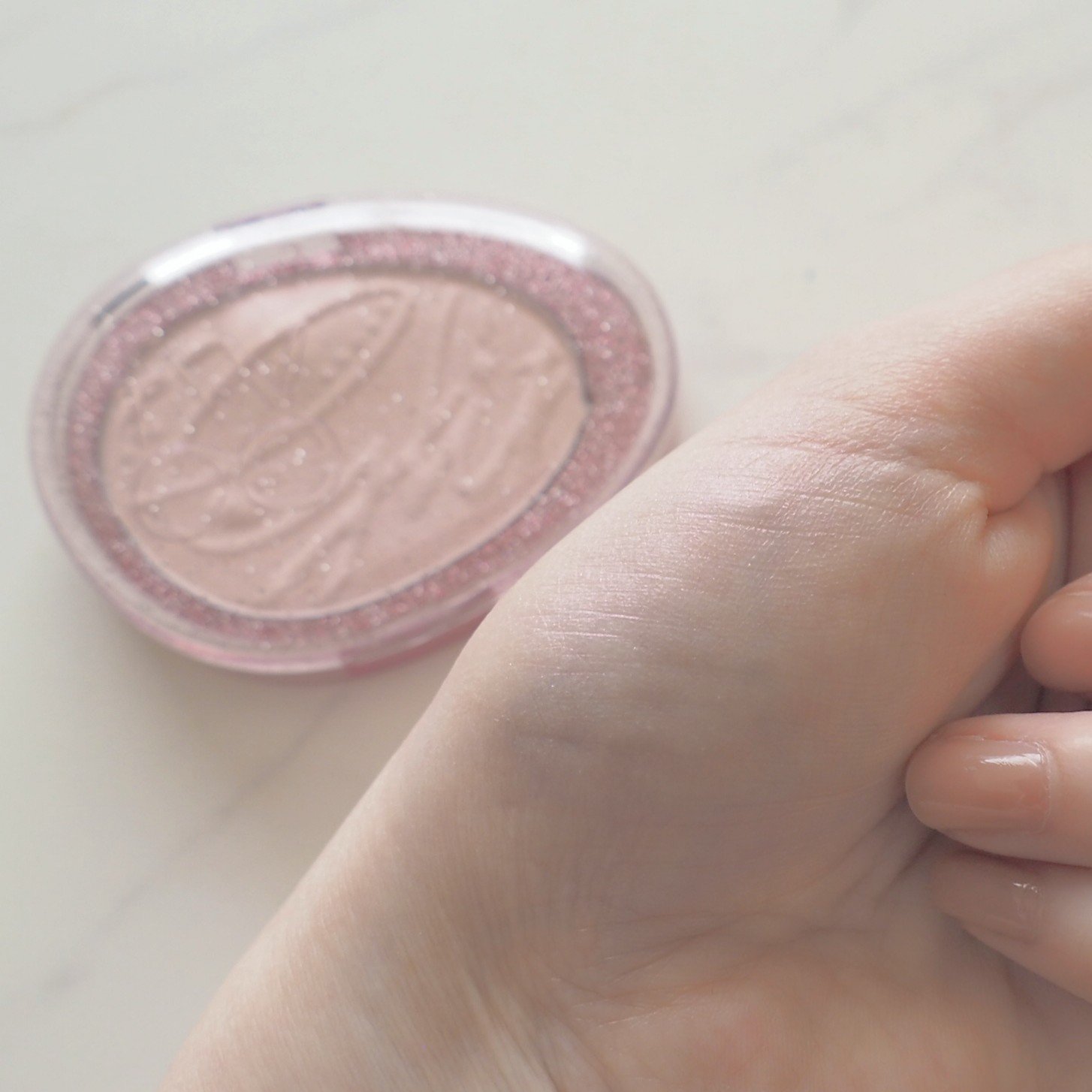 ほんのりとしたツヤ感からフォトジェニックな華やかさまで演出可能な万能ハイライターです✨ 誕生石をテーマにシマー、ベール、セミグリッター、ジェリー、グリッターの5つの多様なテクスチャーが輝く艶を与えてくれるそう👍 光の加減でピンクパールが輝き、ツヤツヤ綺麗な発色✨ しっとりとした粉質でピタッと密着感のある付け心地◎ 鼻先や頬にのせて立体感を出したり、チークとしてふわっとのせてもいい感じ💓 デイリーに使いやすい😌