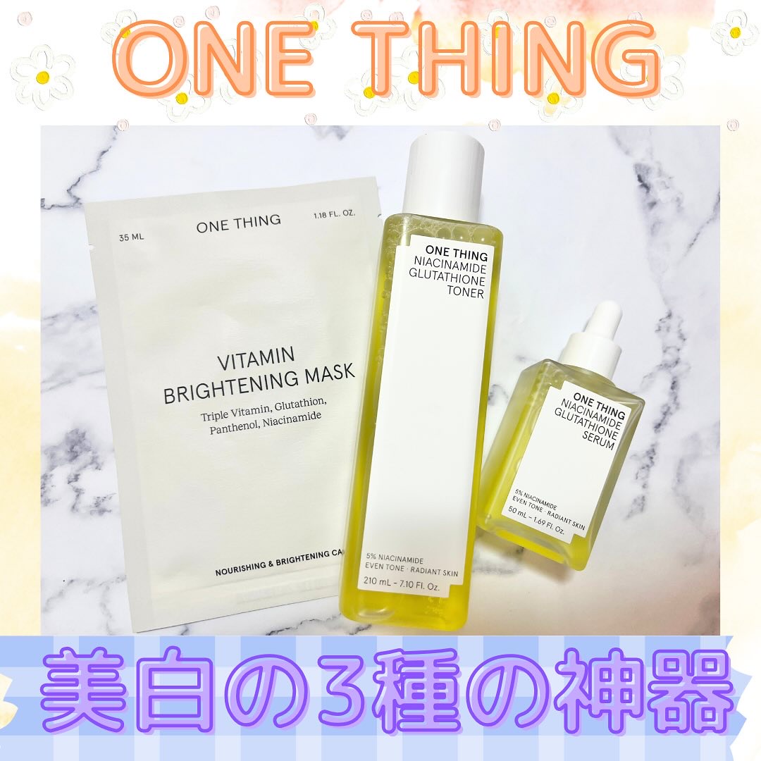 ナイアシンアミドで美白トリプルケア💛 ONE THINGのセット使いがすごくよかった✨ ナイアシンアミドグルタチオントナーはさっぱりシャバシャバなテクスチャーだけど肌になじませるとキメが整って肌触りがなめらかになるの✨ ビタミンブライトニングマスクはかなり厚手のシートが肌にぴたっと貼りついて肌にうるおいをチャージしてくれるよ✨