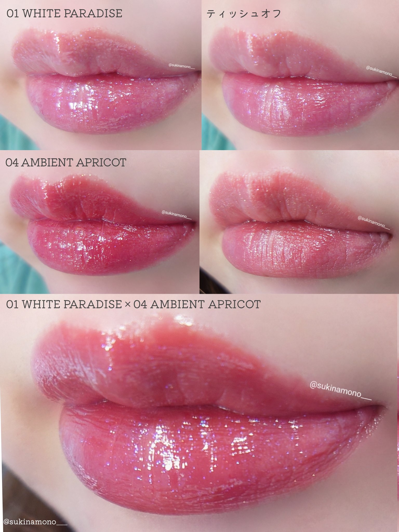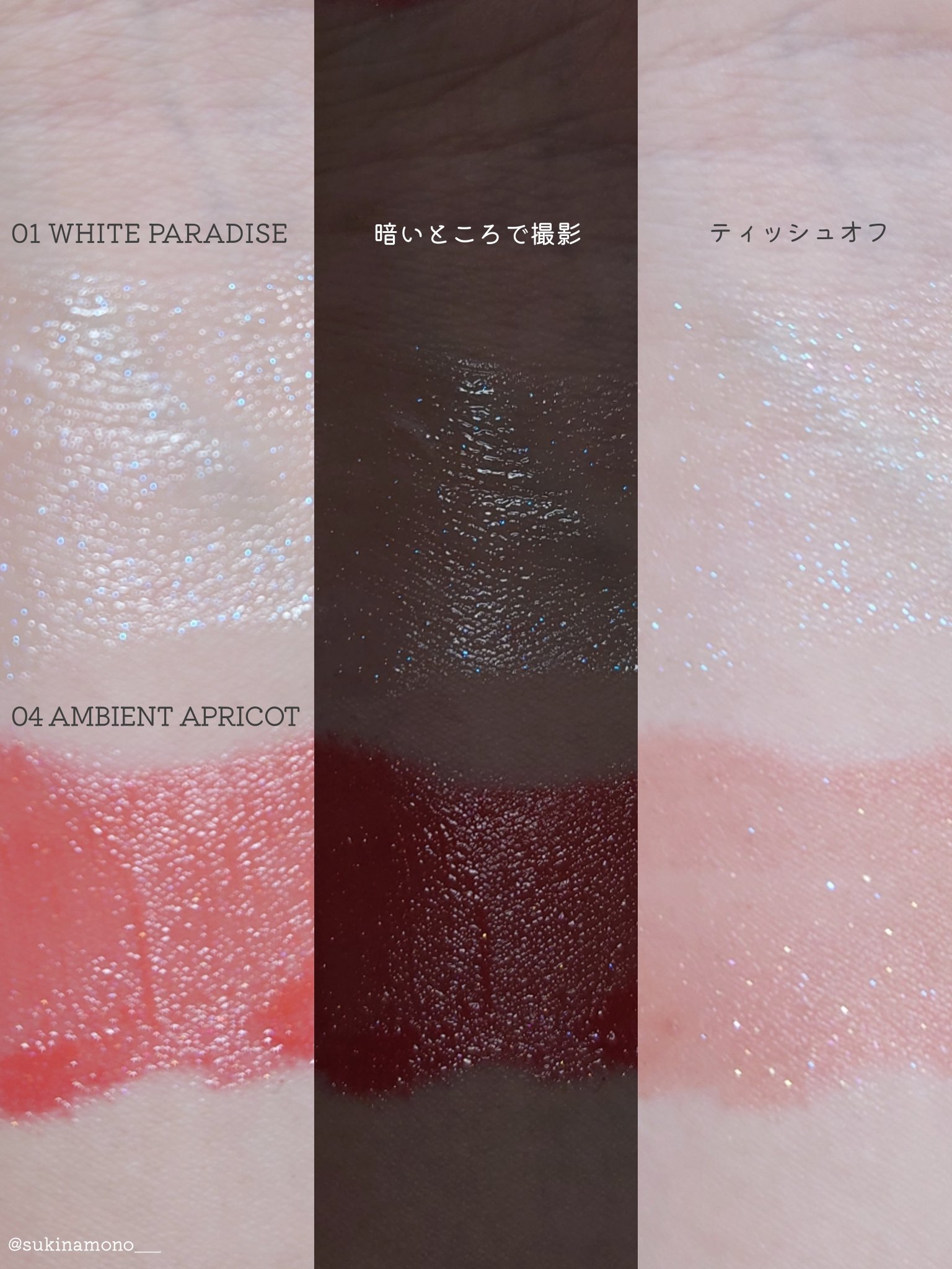 「tilnus」は日韓共同開発の新コスメブランド💎 サンリットパールティントは塗布して1分ほど待つとパールが浮かび上がってくる新感覚テクスチャー👏 01 WHITE PARADISEは塗った直後は白っぽくてつやんとしたリップ、しばらくするとピンクや青ラメとパールがキラキラと輝くリップに✨