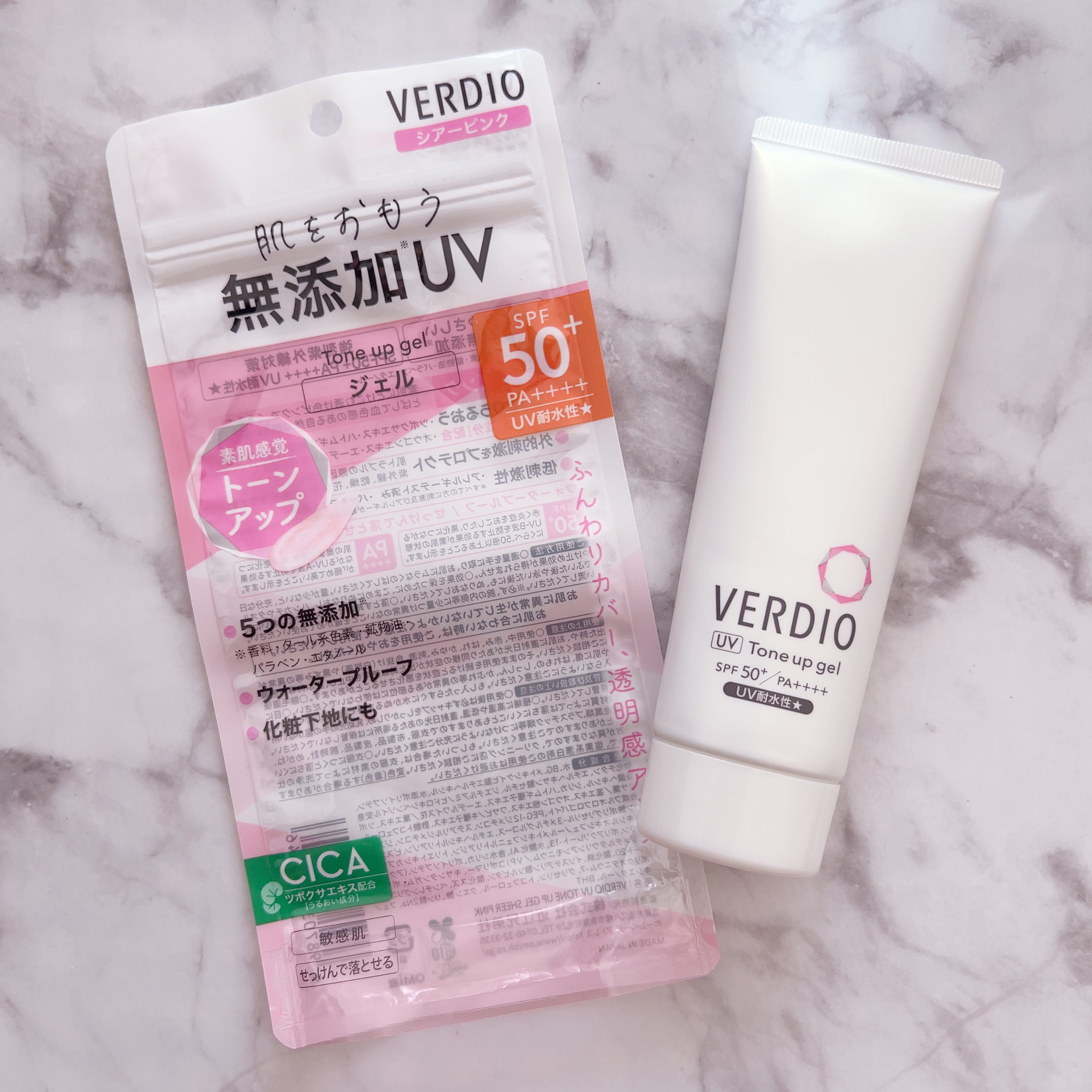 SPF50+ PA++++ UV耐水性★のウォータープルーフですがせっけんで落とせる無添加*で敏感肌の方でも使用できる優しい成分の日やけ止めジェル べたつかずみずみずしいテクスチャで、柔らかく少量でもよく伸びます✨️ 色はシアーピンクで白浮き等はなく、自然にふんわりトーンアップしてくれるような感じ✨️