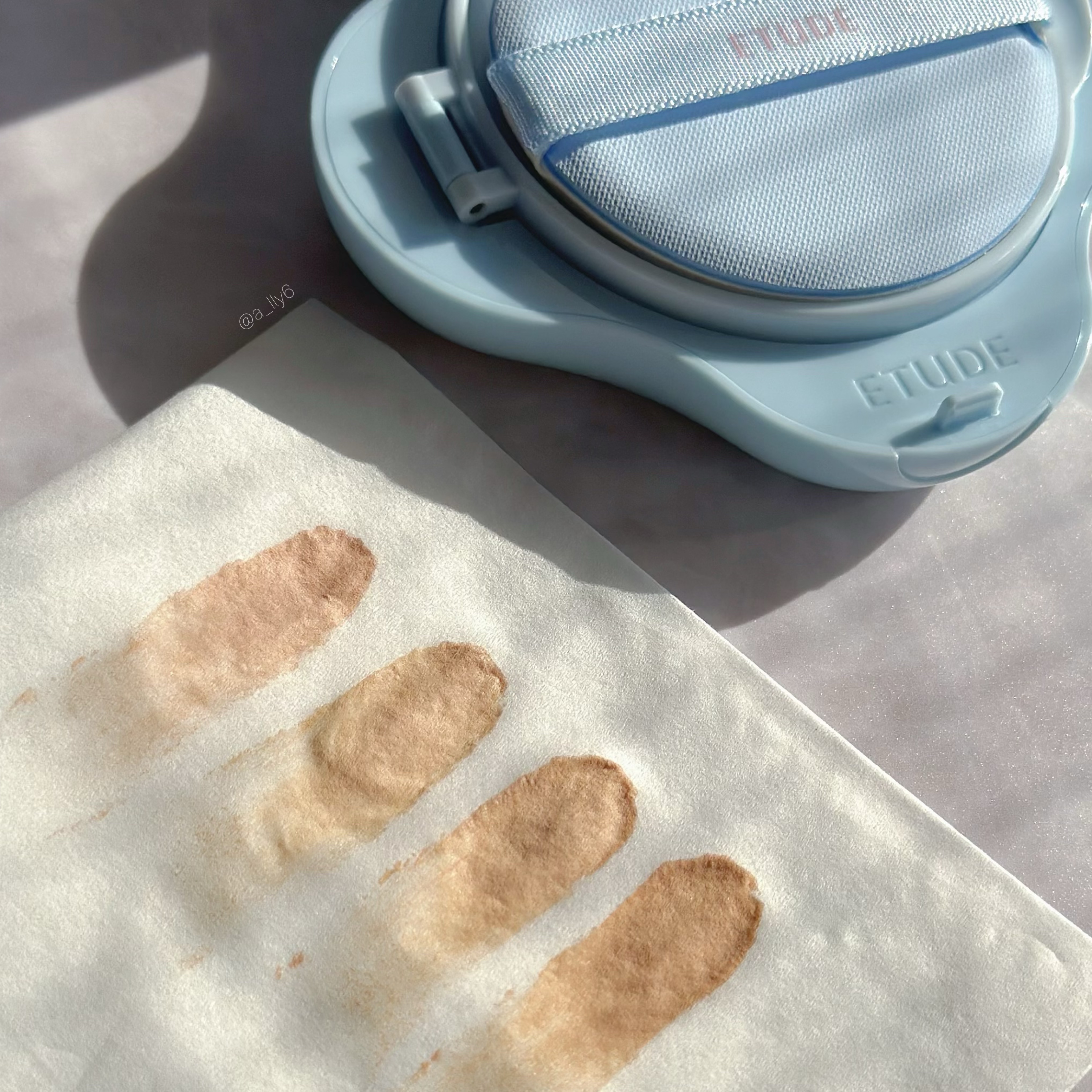 ブルーパウダー配合で肌のくすみを補正 ✔️ナイアシンアミド、アデノシン配合で保湿力も◎ ✔️セミツヤ仕上げが長時間キープ 韓国で話題沸騰中で、OLIVE YOUNGのメイクアップ部門でもランキング1位を獲得してるの!まるで天使のクッション! ナチュラルな素肌感のあるお肌を叶えてくれるのも納得🤍 しかも、コンパクトが雲みたいな形で可愛すぎる☁️🩵