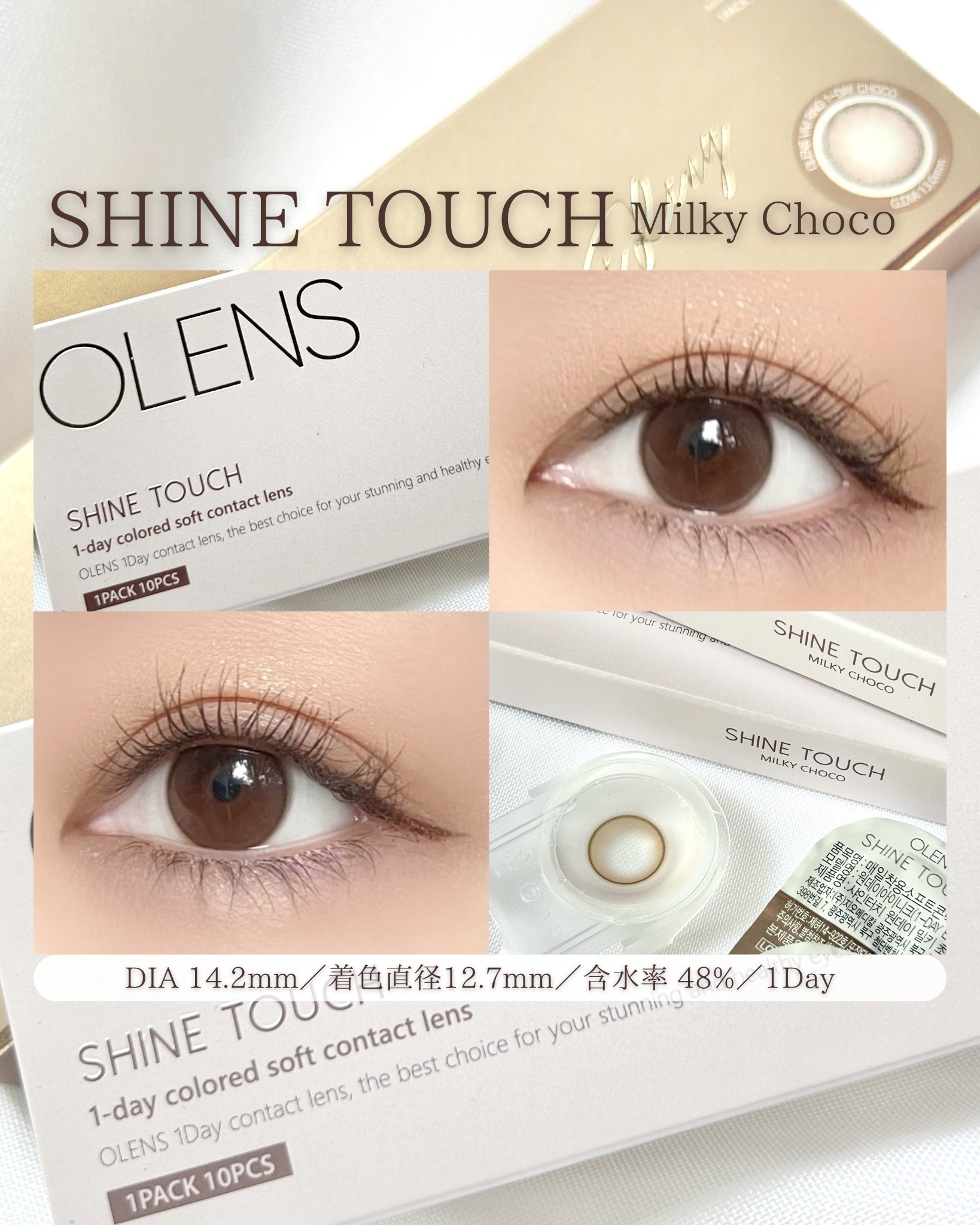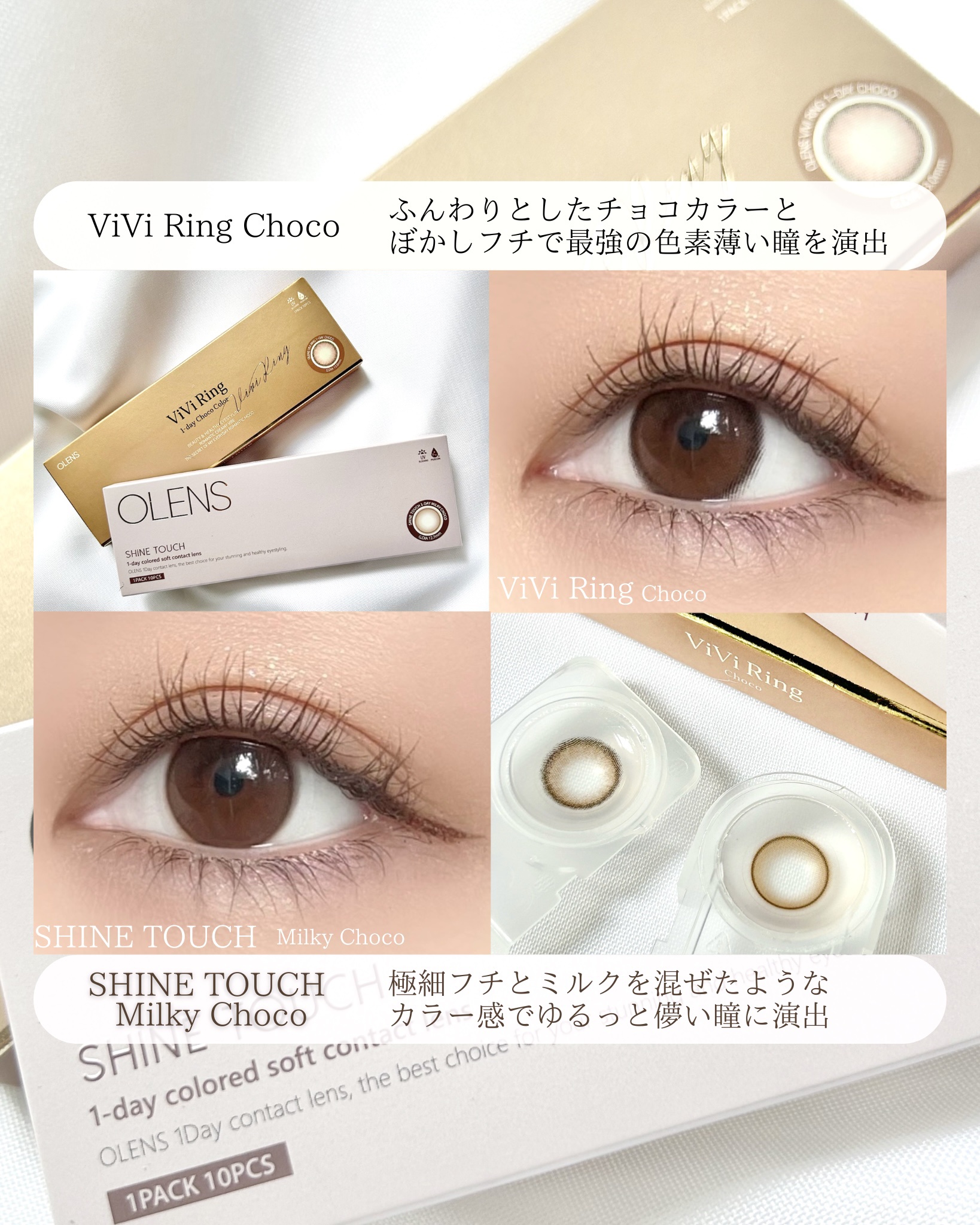 どちらも裸眼をアップデートしたかのようなナチュラルかわいいチョコカラコン🫶 シャインタッチは極細フチでより色素薄い系かつ儚げな印象🫧 ブラウン系やナチュラル系カラコン好きな方にとくにおすすめです✨