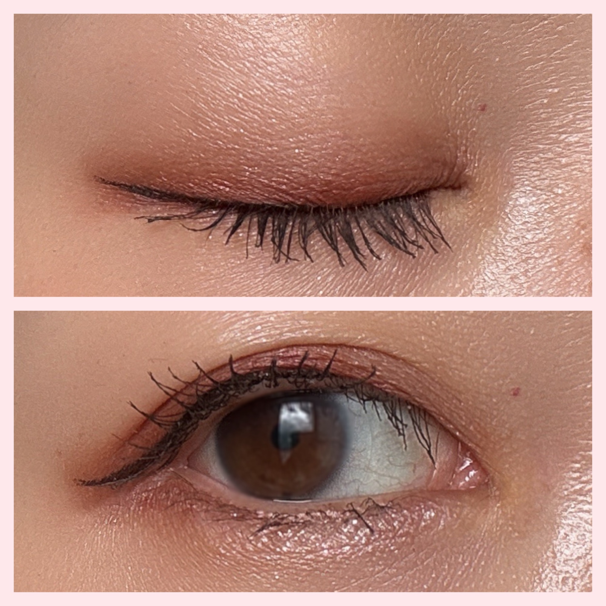 01のマンダリンゴールドはとても抜け感のある淡めの色✨ 私の目には少し物足りなくなっちゃうけど目がはっきりしている方はめちゃめちゃ可愛いと思う!! 03のモカブラウンは手に描いた時におおーーっ!となった絶妙な赤みブラウン。 パールタイプで写真じゃわかりづらいけどツヤっとしてるよ💓 この色が本当に本当に可愛くて🥺✨✨ラインひいて可愛いなぁ…と写真撮ったらマスカラ忘れてた😂 04のオリーブブラウン🫒これはラメタイプ。これは正にオリーブ!って色✨目に描くと深みの中にほんの少し抜け感?が出るようなオシャレ色✨