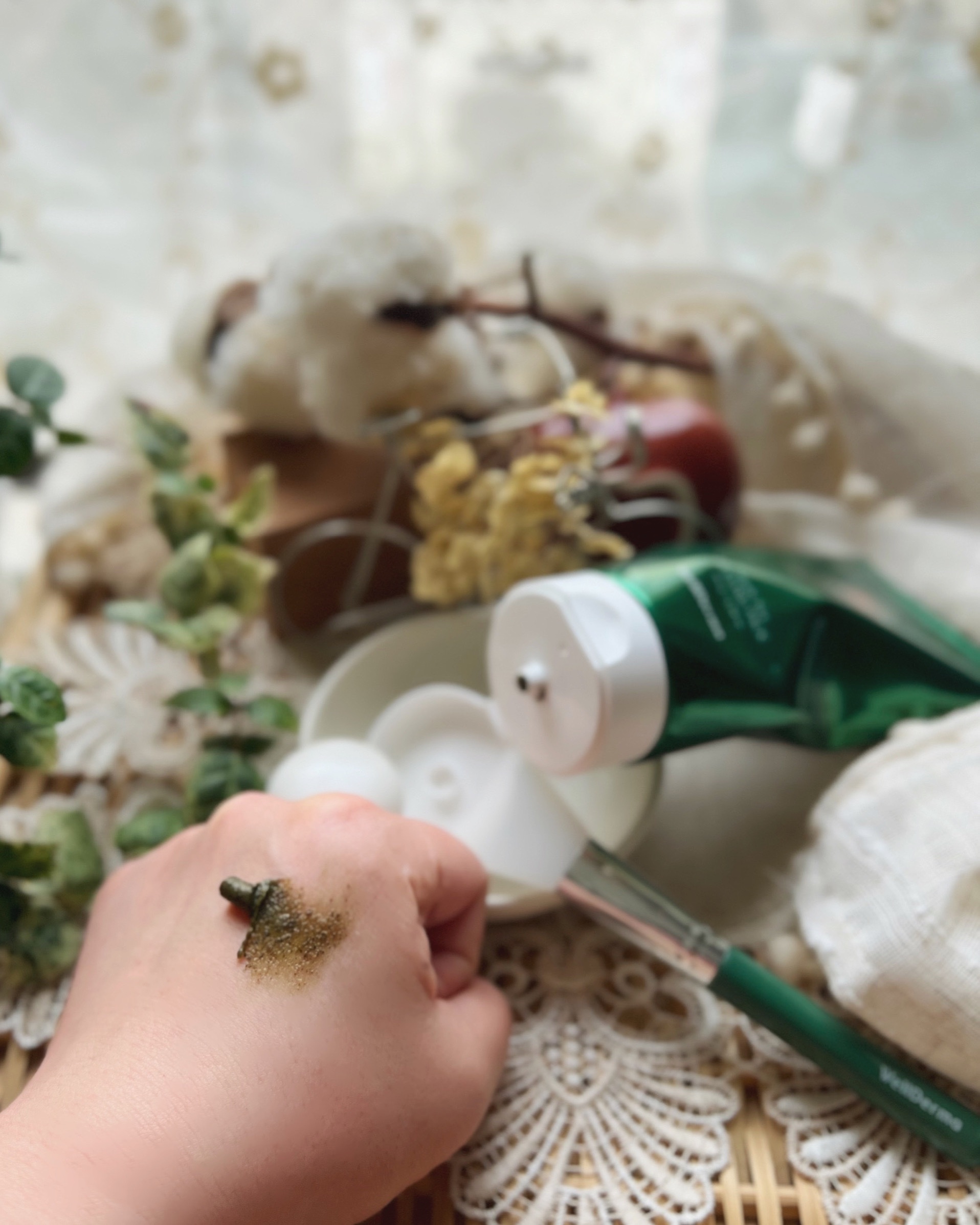 - おうちで安くて簡単にできちゃうハーブピーリング! 微細スピキュールで肌の角質をいたわりながらケアすることができます。 ティーツリーリーフ150ppm、カワラヨモギ90,000ppm、緑茶パウダー8,000ppm配合で刺激感をカバーしながら角質とや汚れを落とし、肌をケアします。 顔のほか、肘や膝などの角質ケアが必要な部位にも使用でき、古い角質によりくすんだ肌をケアして健やかな肌を保ってください。