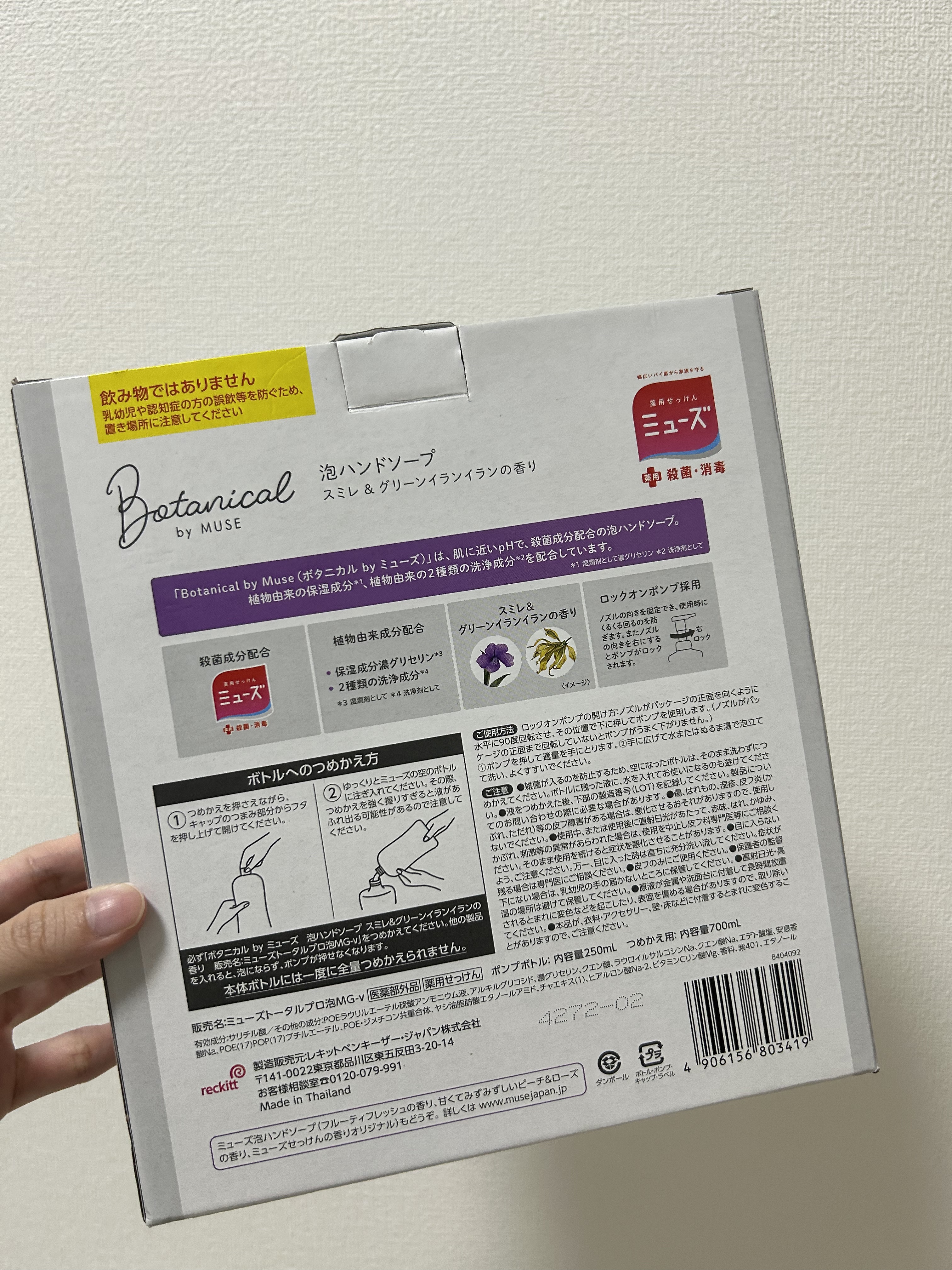 泡が優しいのと香りがふわっと癒されるのがとっても気に入ってるので、違う香りを買ってきました。スミレ&グリーンイランイランの香り。「あなたの手肌を想う」をコンセプトに誕生した「ボタニカルbyミューズ」シリーズ。「殺菌・洗浄成分」に加え、「心地よ...
