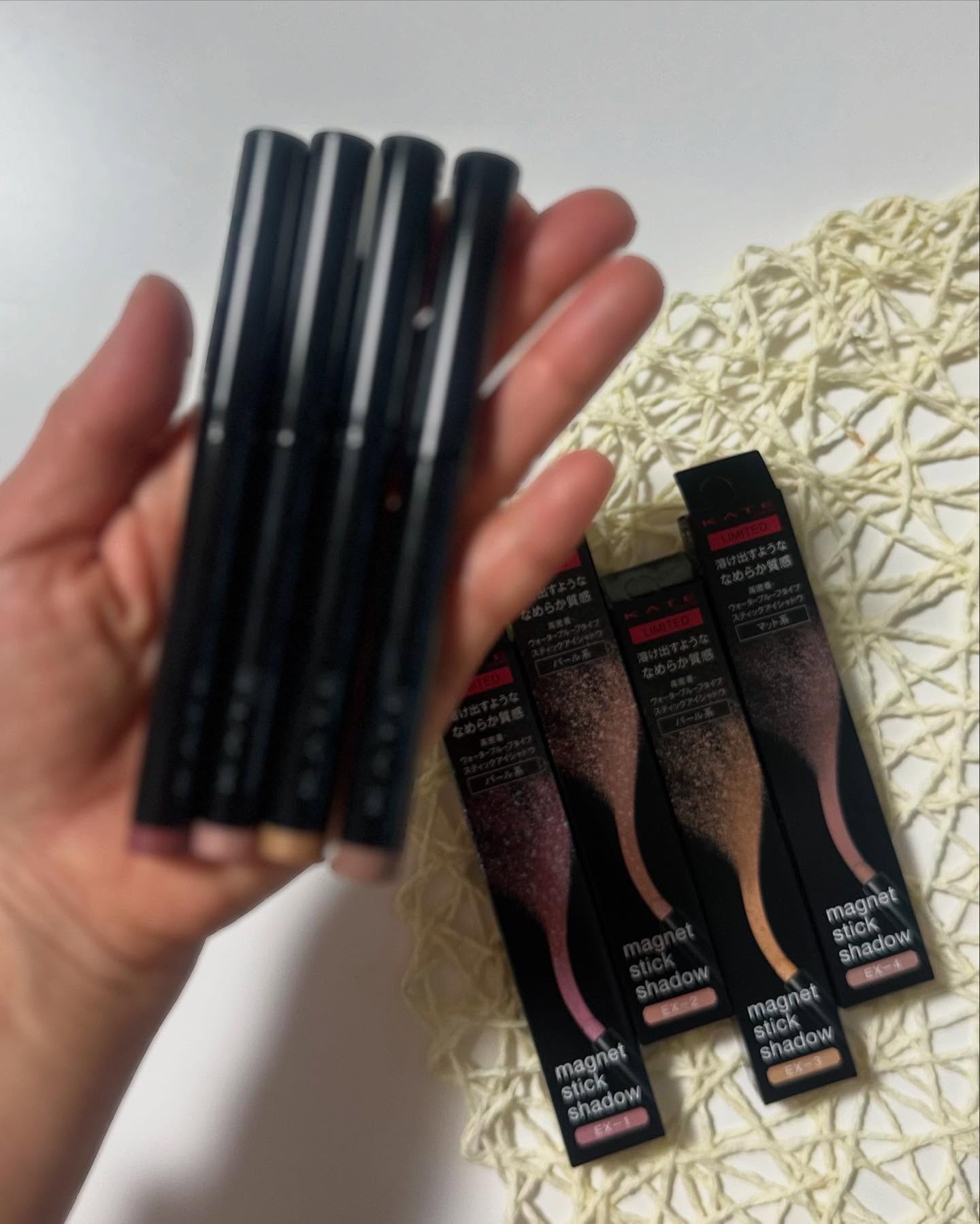 KATEの新作マグネットスティックシャドウが可愛すぎた🥹 なんと言っても密着力がすごい! 描いてすぐはぼかしたり調整可能なのに、時間をおくとピタッと密着して指で擦っても全然寄れない! この2色は特に人気なようでMy Kao Mallではこの2色だけ売り切れてる🥲(投稿時点) 2月22日発売〈数量限定〉 発売日まだだけどドラッグストアで見つけたよ👀