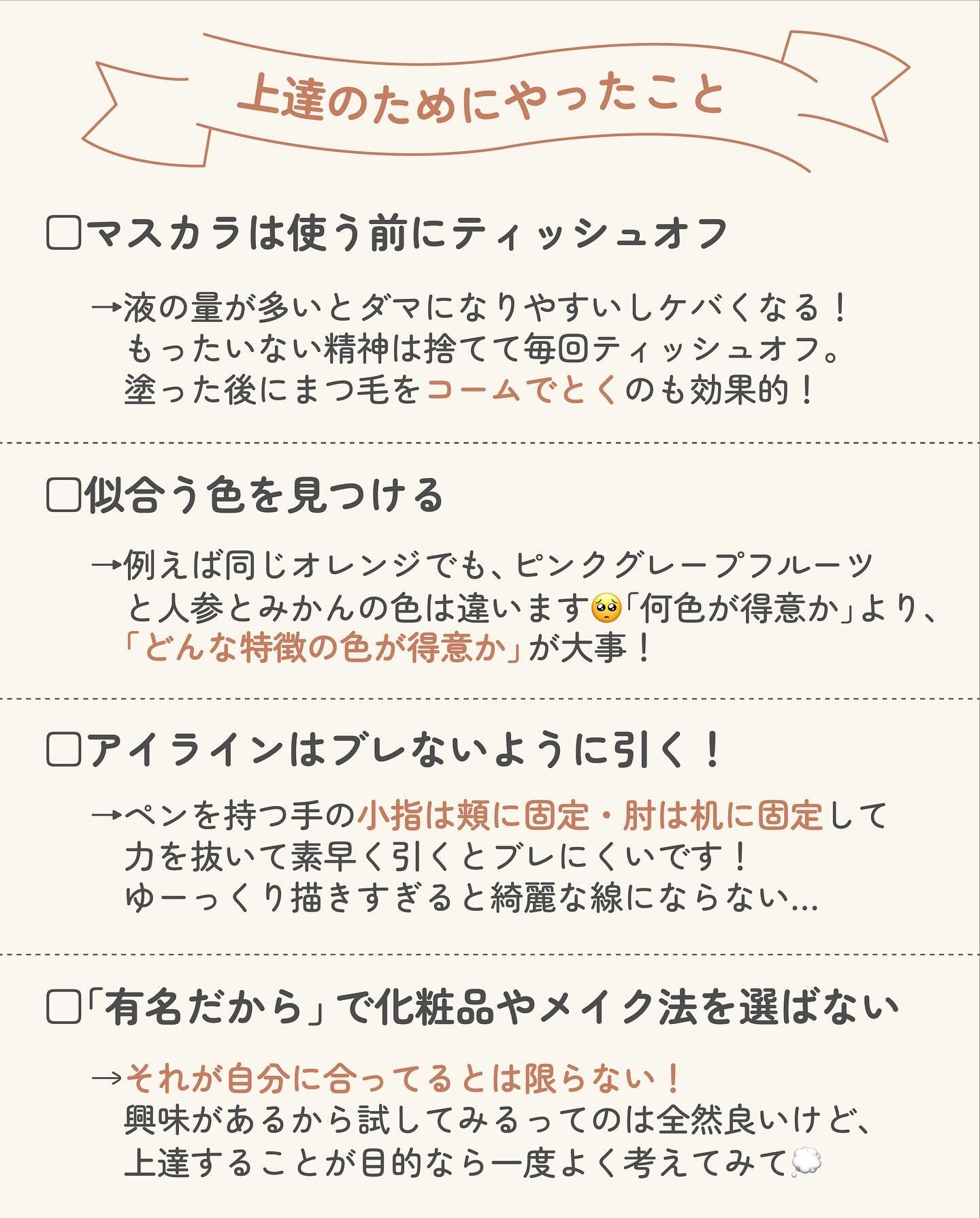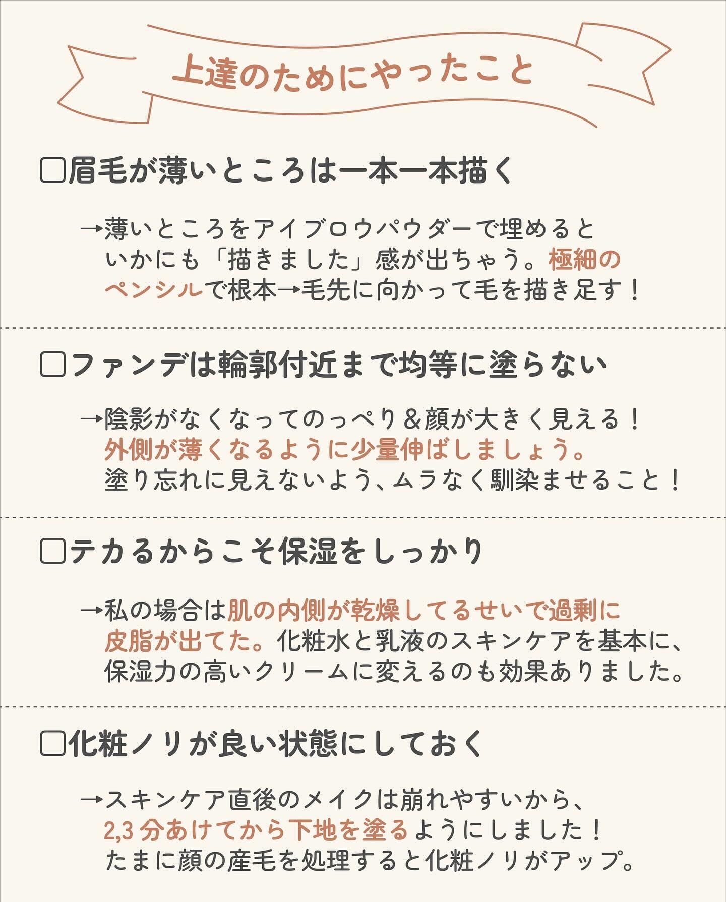 ちょっとした一手間でメイクの仕上がりが綺麗に なったり,メイク崩れしにくくなるんです🙆 私自身がメイクをはじめたときに 「これを知っておきたかったな~」と思う4つのポイントをまとめてみたので